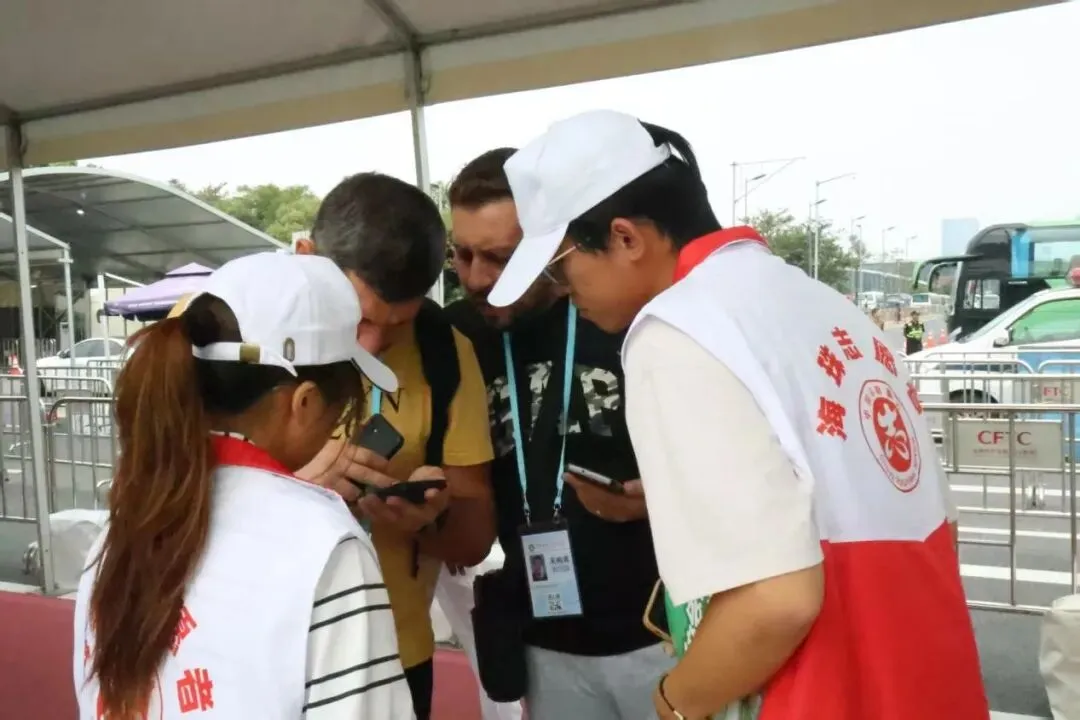本次志愿活动在馆外进行,负责向参展人员提供场馆指引、办证指引等服务,同时进行维持馆外秩序,交通疏导、协助翻译等工作