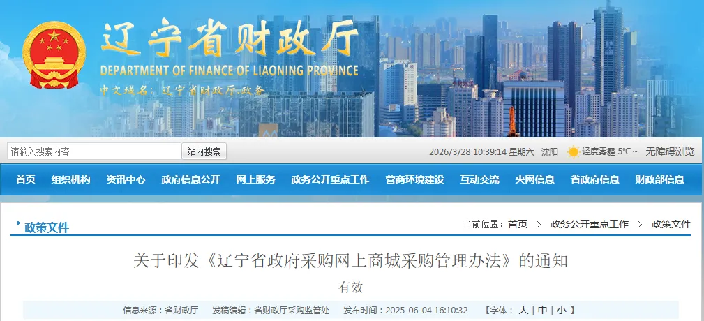 第五条 辽宁省财政厅(以下简称“省财政厅”)负责建立网上商城并制定相关管理办法。