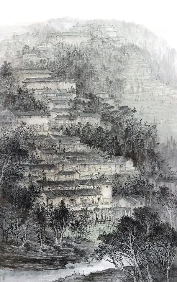主题表达空心化。 作品紧跟热点,乡土、时代、人文等主题一应俱全,但都浮于表面。画乡村就是老屋、农具的堆砌,画时代就是高楼、高铁的拼接。没有真实感悟与情感内核,只是迎合评审的“命题作文”。