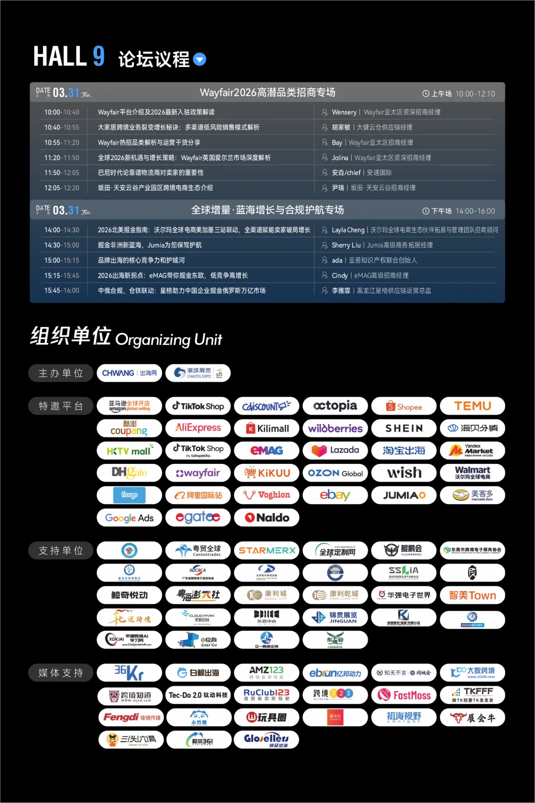 亚马逊、TikTok Shop等 80+主流平台官方团队亲临现场,解读2026年最新平台招商政策与扶持计划。