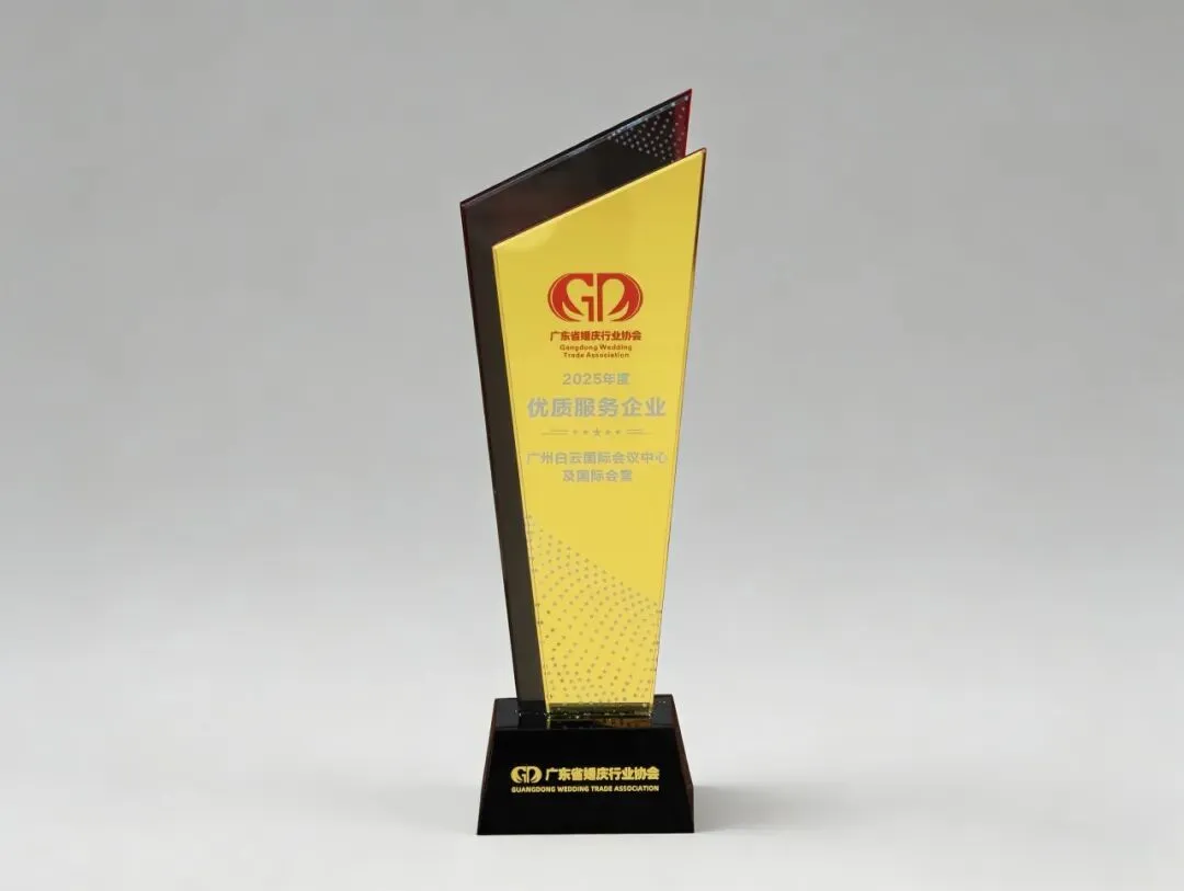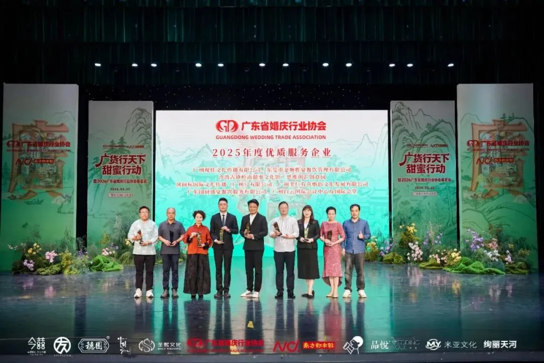 3月27日,广货行天下甜蜜行动暨2026广东省婚庆行业协会春茗会圆满举行,全省21城婚庆产业链商家齐聚,共探甜蜜经济新机遇,见证行业榜样力量。广州白云国际会议中心及国际会堂受邀出席本次盛会,并凭借卓越的婚宴服务品质、高端场地实力与行业口碑,荣获“2025年度优质服务企业”奖项。