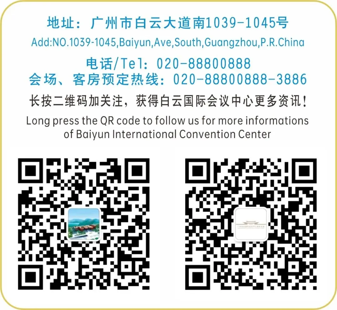 广州白云国际会议中心坐落于白云山西麓,是岭南集团旗下品牌、国际大会及会议协会(ICCA)会员单位,集会议、展览、酒店、餐饮、演出等功能于一体,与白云国际会堂共同构成总规模超45万平方米的大型综合性会议综合体。作为华南地区首个具备“百间会议室、千间客房、万人接待能力”的政商首选场馆,凭借专业的服务体系与完善的配套设施,为宾客提供高品质的会议服务、典雅舒适的居停空间、独具岭南风味的餐饮体验以及身心放松的康体中心,在都市繁华中勾勒出一幅自然与惬意共融的旅居画卷。