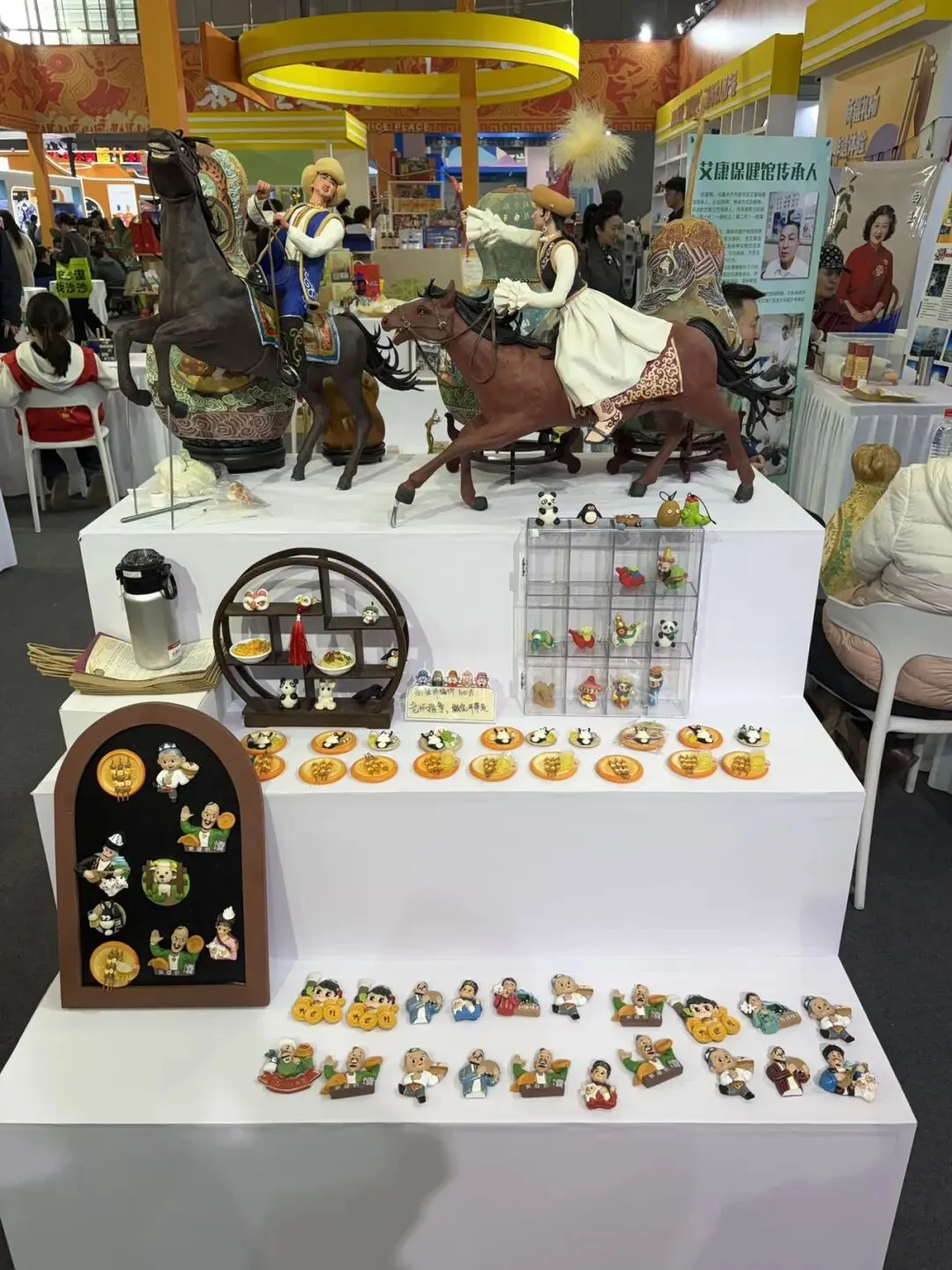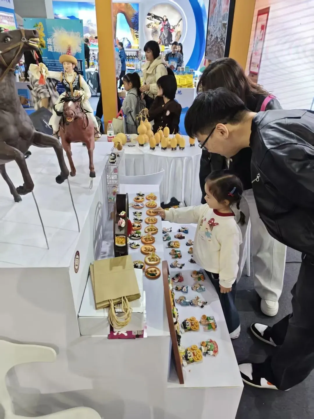 走进展位,仿佛进入了微缩的新疆世界。从栩栩如生的《姑娘追》,到融合现代审美的“馕”冰箱贴文创,一块普通的面团在传承人手中经过捏、搓、揉、刻,幻化成了讲述新疆故事的最佳名片。