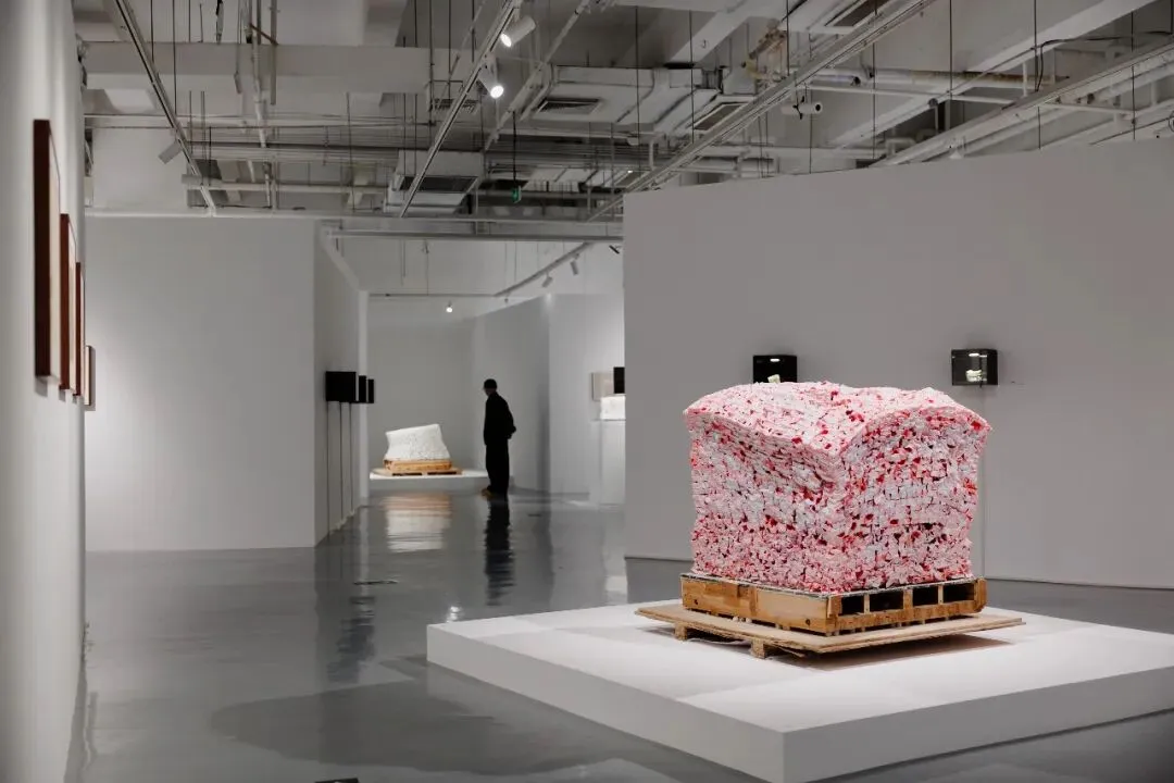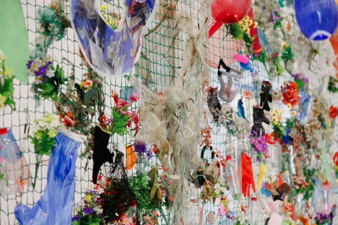 那些由塑料瓶碎片拼装而成的球体,那些缠绕着渔网的光头形象,延续了艺术家标志性的视觉符号,同时将早期对个体生存困境的凝视,放大为对人类整体文明状态与自然关系的寓言式诘问 。