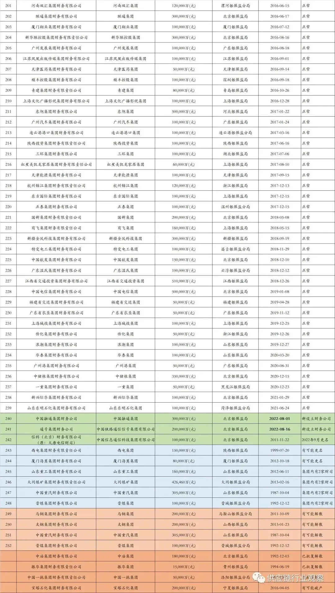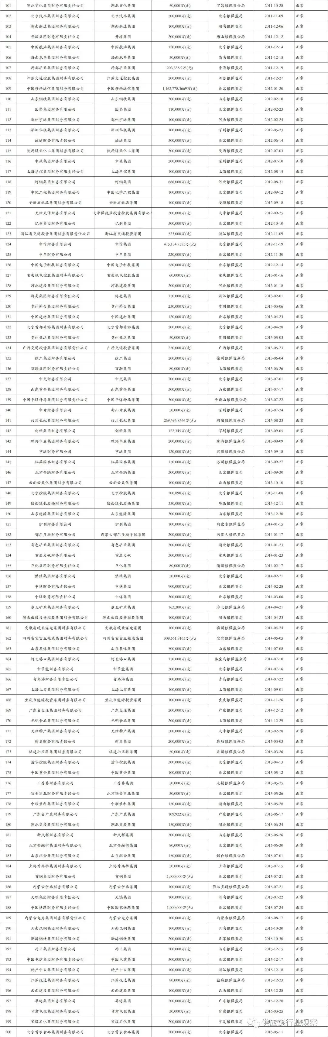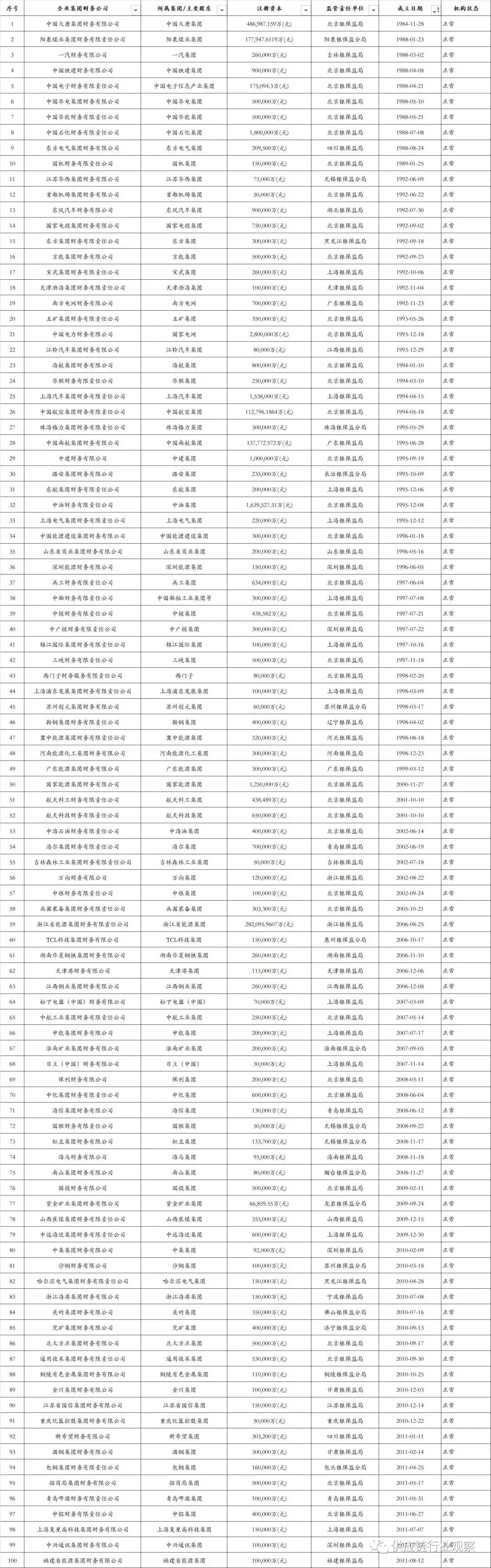 此外,今年有两家财务公司新设立,包括:中国融通集团旗下融通财司和中国铁路通信信号集团旗下通号财司。