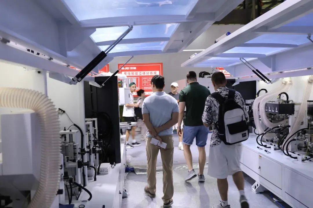 展会第二天,京雕智控的展位前依旧人头攒动,参观者们纷纷驻足,仔细观赏并体验京雕智控带来的智能家具生产解决方案。从激光智能高光封边机H888到H800重型窄板激光封边机,每一款产品都以其独特的技术优势和出色的性能表现,赢得了参观者们的一致好评。