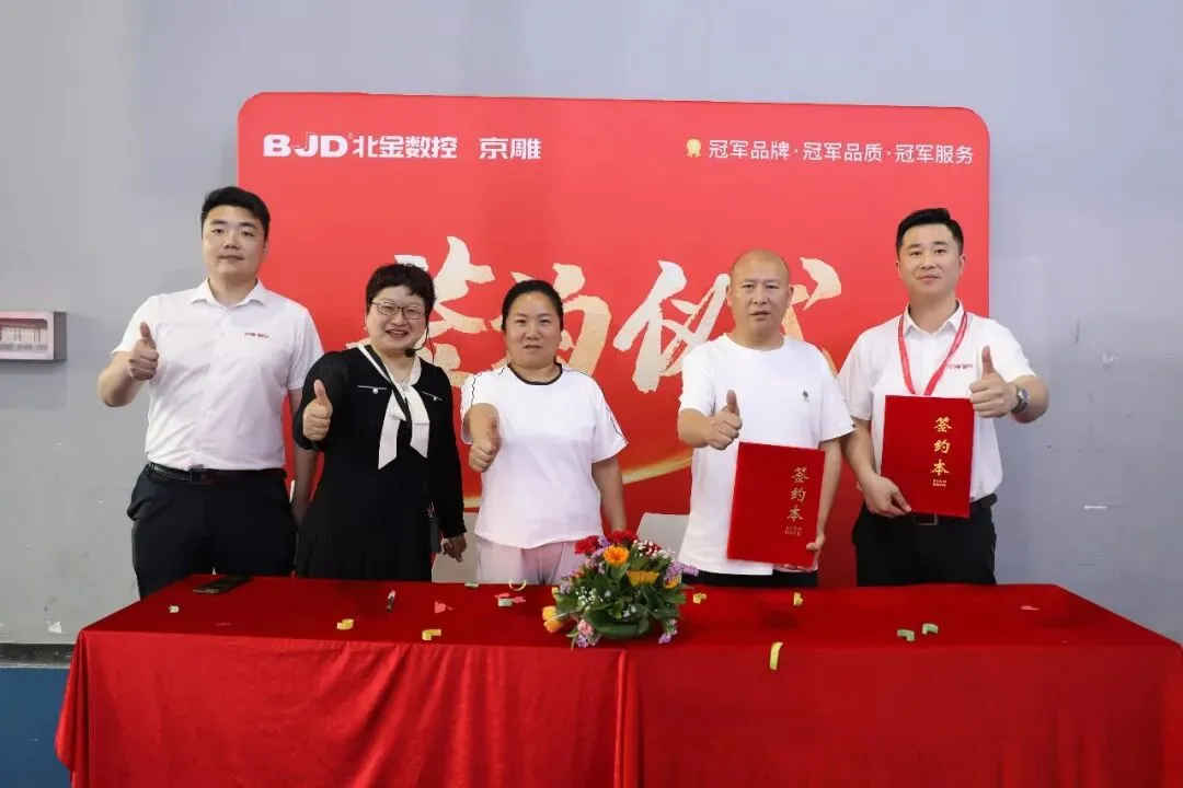 展会第二天,京雕智控的展位上依旧签约不断。凭借卓越的产品品质和技术实力,京雕智控再次赢得了市场的广泛认可。多家知名家具企业与京雕智控达成了合作意向,并现场签订了采购合同。这不仅是对京雕智控产品质量的肯定,也是对公司服务能力和市场影响力的有力证明。