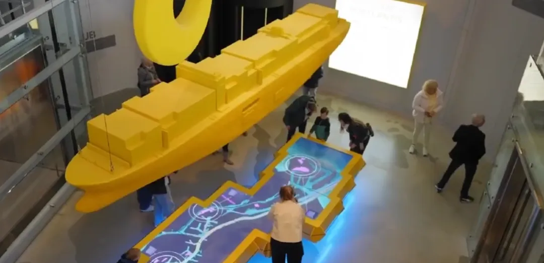 在马斯平原二号那片充满无限可能的填海土地之上,一座熠熠生辉的全新体验中心——波特兰蒂斯(Portlantis)展览中心傲然崛起。它宛如一座通往鹿特丹港口奥秘的时光之门,引领游客全方位、深层次地领略这座欧洲最大、最现代化港口的复杂脉络与蓬勃活力,洞悉其对社会、经济、生活环境以及自身发展的深远意义。踏入体验中心令人叹为观止的中庭,一个巨大的透明港区模型瞬间映入眼帘,将游客紧紧包裹其中。借助巧妙的光影设计,不同区域和行业被逐一照亮,鹿特丹港的成长轨迹、发展脉络、连贯逻辑与多元风貌清晰呈现。更贴心的是,新增的特殊演示模式,让导览员能带领游客开启专属定制故事之旅。“化学的魔力”区域,游客化身小小科学家,亲手分解分子,在加热与添加物质的奇妙过程中创造新物质,再用它们打造出千奇百怪的物品。而那面能通过身体跟踪做出反应的大型互动墙,让游客在鹿特丹港的化学公司间自由“牵线搭桥”,一个相互依存、协同工作的工厂网络就此揭开神秘面纱。“货运游戏”里,透过面前的大窗户,船只装卸货物的场景实时上演。游客在动态多人游戏中,与时间赛跑,精准装卸货物。还有自行车的爆炸视图,让游客探寻原材料的源头,滚动数字地球仪收集零件,组装后看着它在屏幕上飞驰,沉浸感十足。如涉及作品内容、版权和其它问题,请在30日内与本公众号联系,我们将在第一时间删除内容,感谢理解!对本公众号所有项目展示,我们均提供咨询设计和项目落地