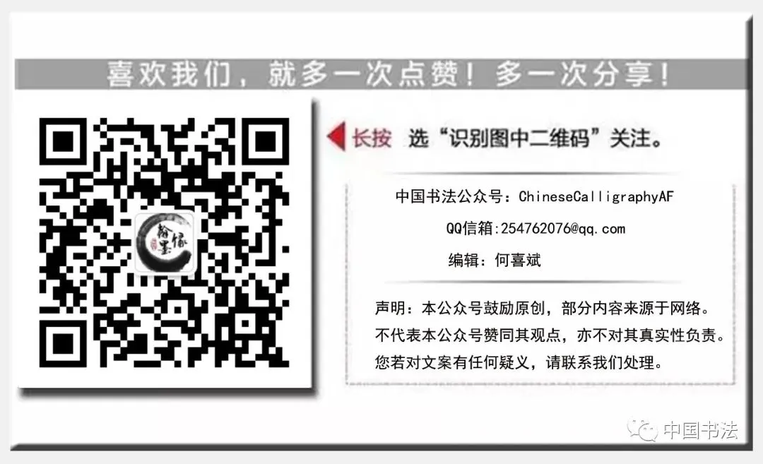 为了让更多的人有机会欣赏和收藏名家作品,中国书法微信平台每周日推出各类艺术家的优秀的作品,以满足普通大众“亲近艺术、感悟生活”的需求!欢迎大家关注本微信公众号中国书法(微信号:ChineseCalligraphyAF):中国最专业的书画艺术品收藏学习、交流、交易平台,互相讨论学习。