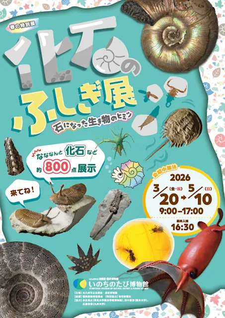 展览地点| 福冈县北九州市八幡东区东田2-4-1 北九州市立生命之旅博物馆展览时间| 2026年3月20日~2026年5月10日 9:00~17:00展览类型| 自然・科学展览官网| https://www.kmnh.jp/event/1281/门票费用| 一般700日元 / 大学生・高中生500日元 / 中学生・小学生400日元
