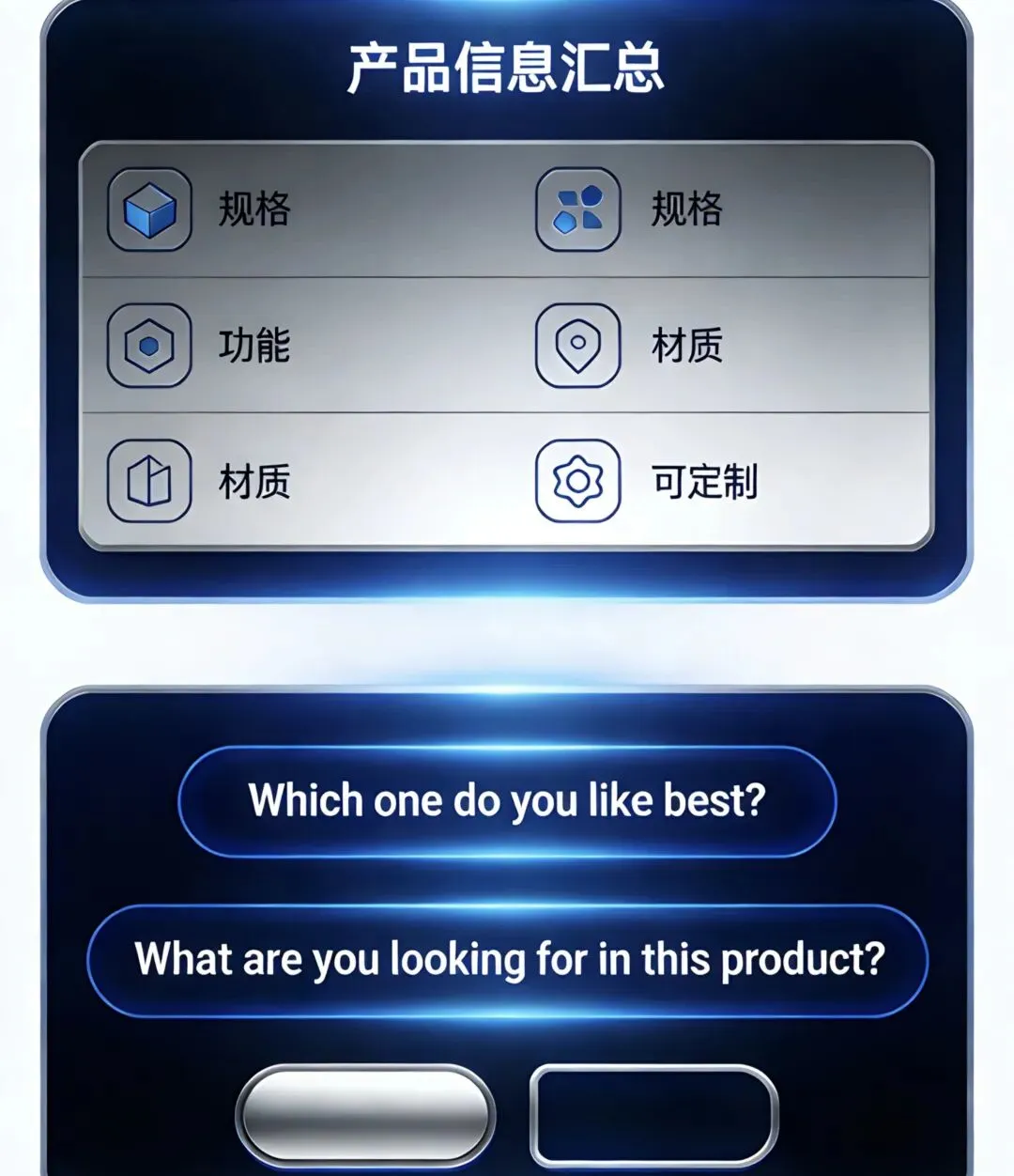 • 产品规格、功能、材质、可定制部分