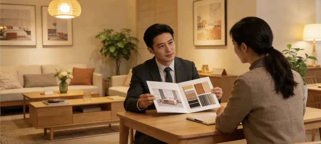 看完车间后,带客户去样板间,坐下来慢慢展示产品。
