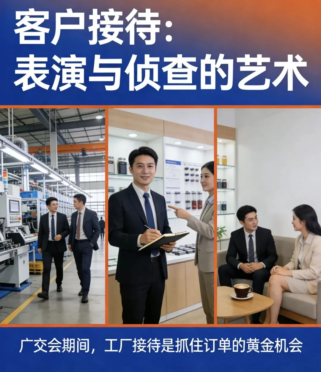 接待客户,其实是一场表演,也是一次侦查。工厂参观 → 展示能力;样板间 → 挖掘需求;聊天环节 → 建立信任。外贸业务员不只是卖产品,更是在建立关系、了解客户、为下一单铺路。哪怕英语一般,也能靠热情、观察和准备,给客户留下深刻印象。广交会期间,别只盯着展位,客户来访工厂,也是你抓住订单的黄金机会!