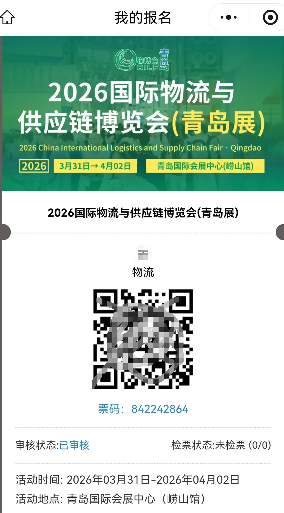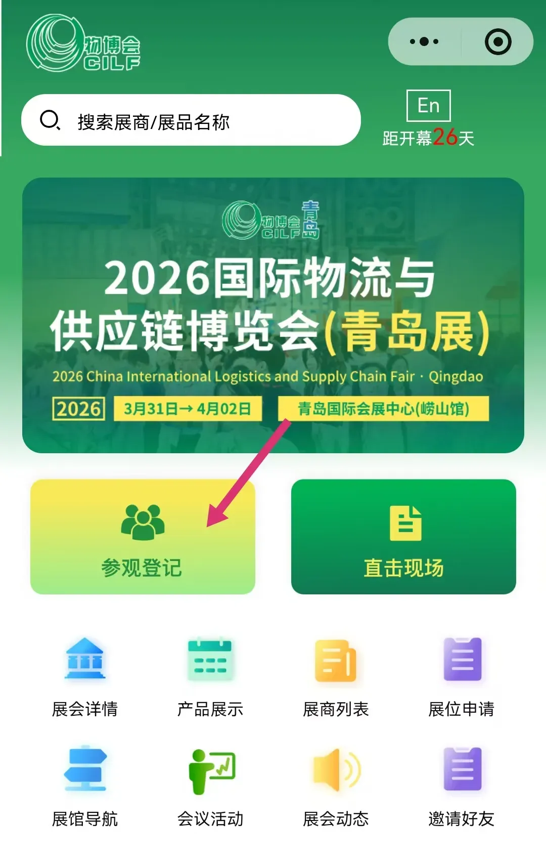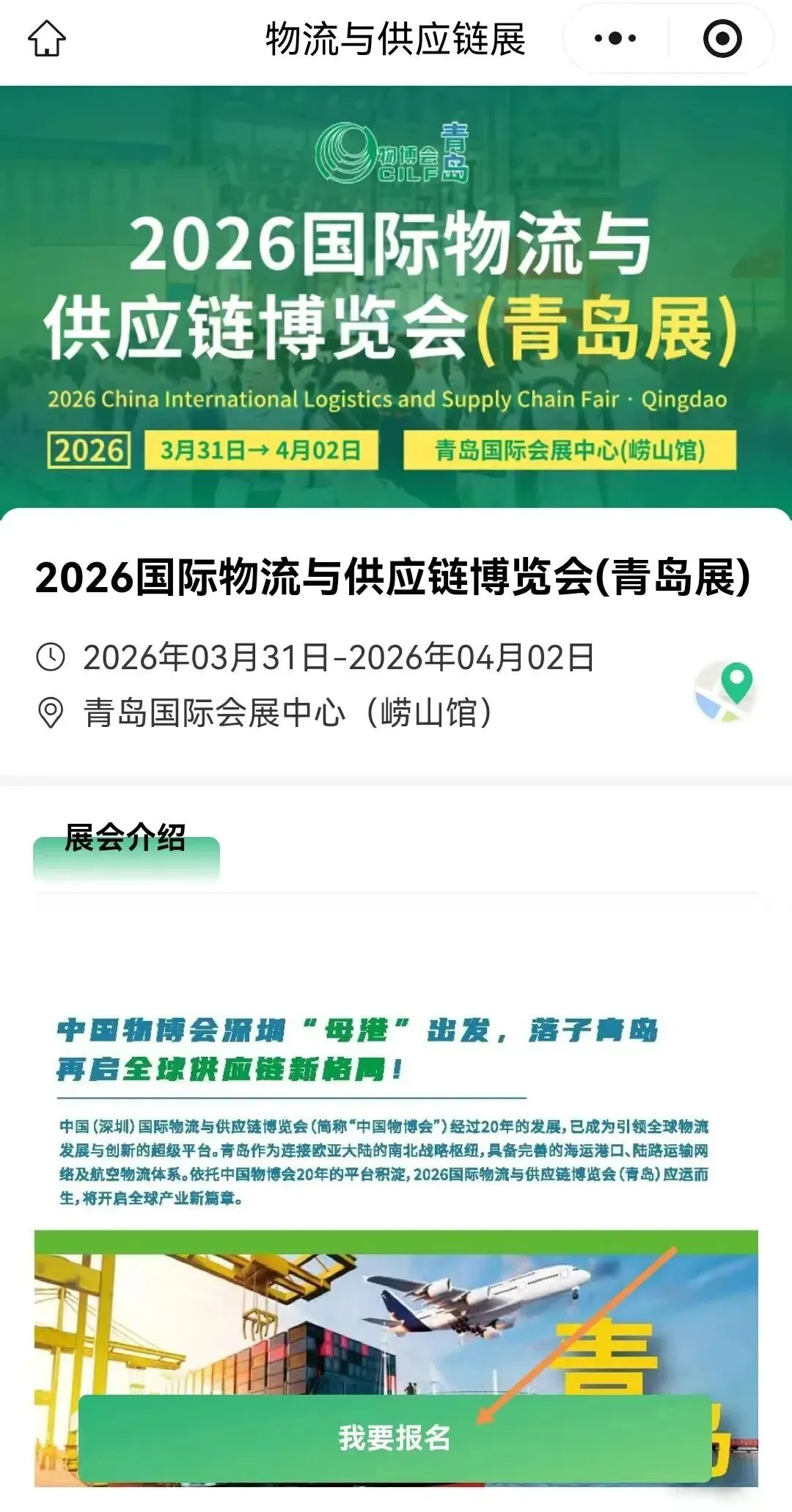 1.扫码进入官方小程序 “物流与供应链展”,点击“我要报名”。
