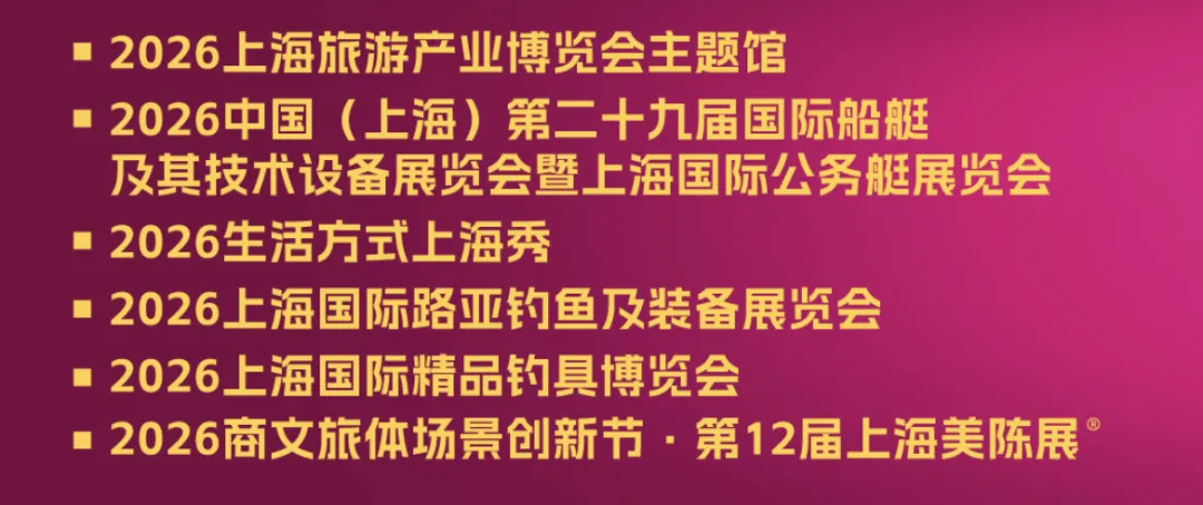 2026年3月29-31日,2026上海旅游产业博览会主题馆预计将迎来旅游目的地管理部门、旅游投资与开发、旅游项目运营、旅行社及旅行俱乐部、公路旅游产业链、文旅新质生产力企业、沉浸式项目企业、文博文创等专业观众,与长三角旅游爱好者等群体超5万人次。