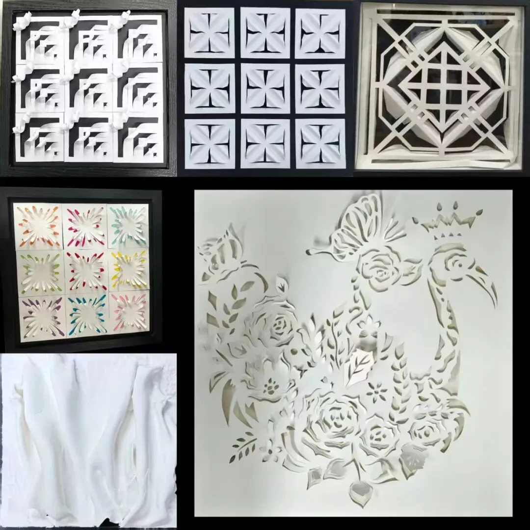 以纸为媒介,借由镂空、折叠、堆叠等手法塑造出丰富的光影变化与形态韵律,既有几何秩序的理性之美,也有自然形态的灵动诗意,在二维与三维的边界间,展现了纸材的可塑性与手工创作的温度,是形式美法则与材料表现力的生动融合。学生姓名:杨锡兰、雷珺仪、曹佳怡、肖雨、朱锦粲、甘紫艳