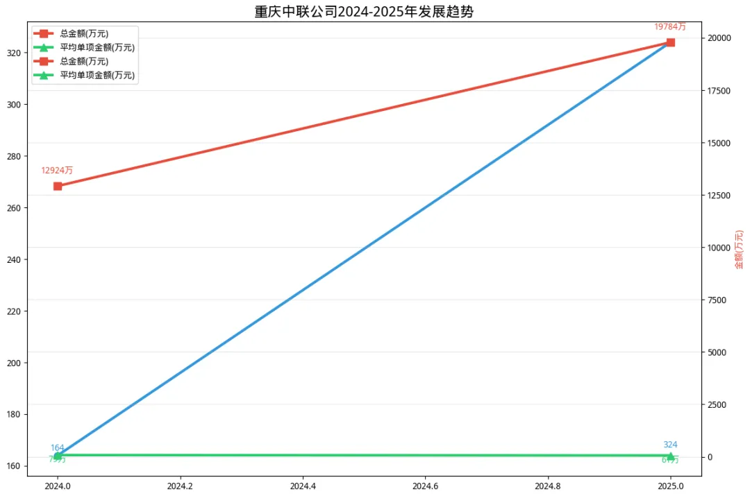 宏观业绩指标是衡量企业发展健康度最直观的标尺。通过对比2024年与2025年的核心经营数据,我们可以清晰地勾勒出重庆中联公司的增长曲线。