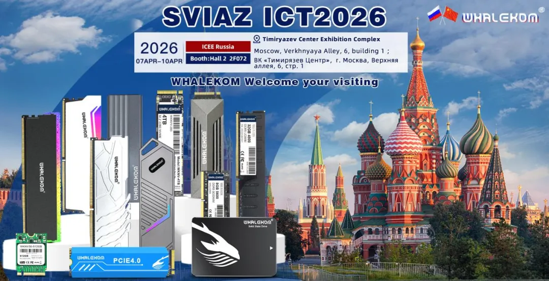 2026年4月7日至4月10日,俄罗斯莫斯科通讯展览会(ICEE Russia SVIAZ ICT 2026)将于在莫斯科季米里亚泽夫中心(Timiryazev Centre)举办。届时,WHALEKOM团队会携一众存储产品亮相,包括DRAM内存条、SSD固态硬盘、移动硬盘等多个品类的存储产品解决方案。现诚挚邀请您莅临我们的展位(WHALEKOM展位号:Hall 2 2F072)参观交流,共同探索存储行业的未来趋势,把握万亿级市场机遇!