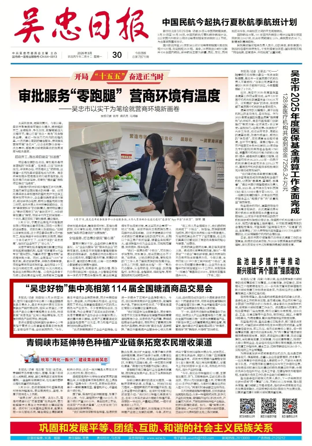 3月26日至28日,在四川省成都市举办第114届全国糖酒商品交易会上,吴忠市创新开展农文旅体商融合产销对接活动,组织36家酒庄、7家农特产品企业集中亮相展会主会场,持续做强“吴忠优品”区域公用品牌矩阵,扎实推动特色产品拓市场、树品牌。
