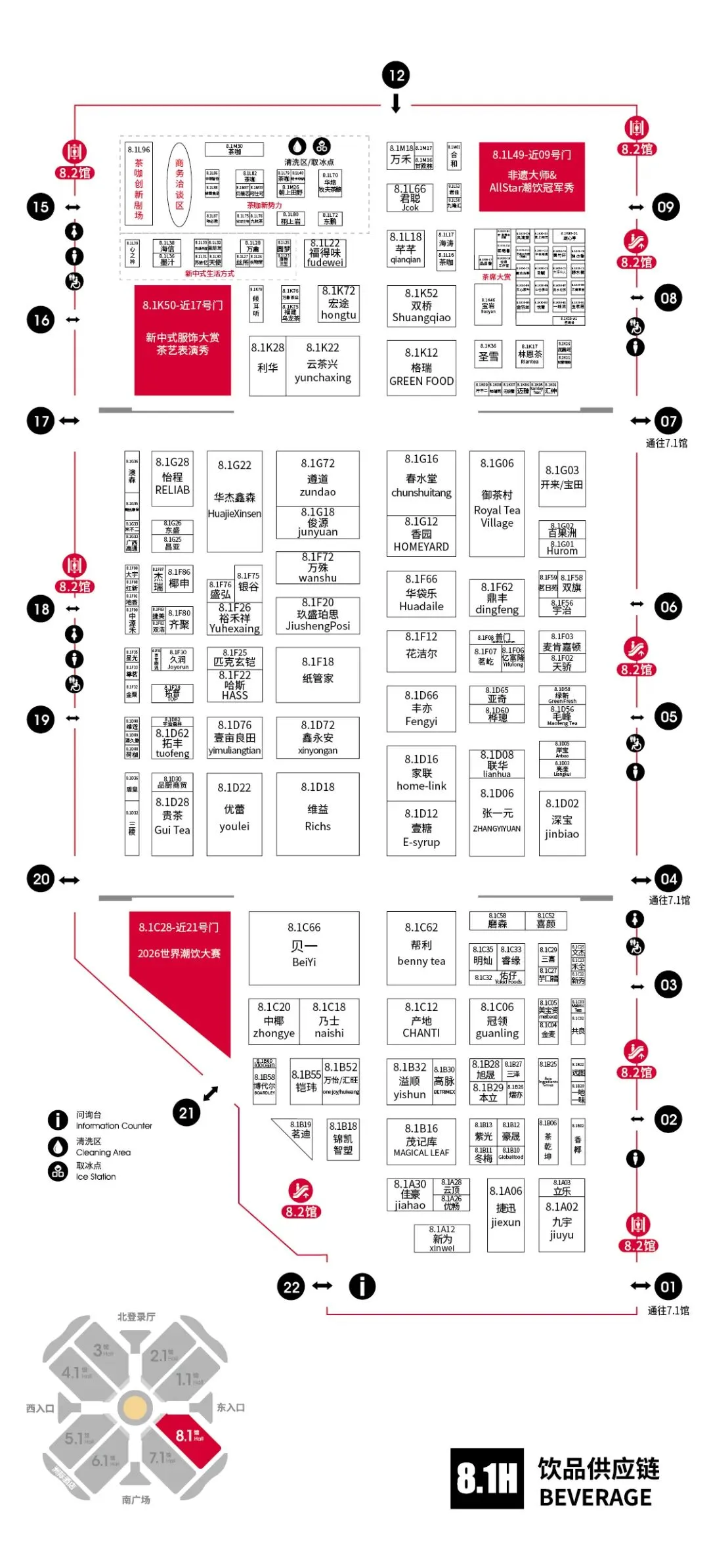 1.1H、2.1H、3H、4.1H、5.1H、6.1H、7.1H、8.1H、展厅12号门
