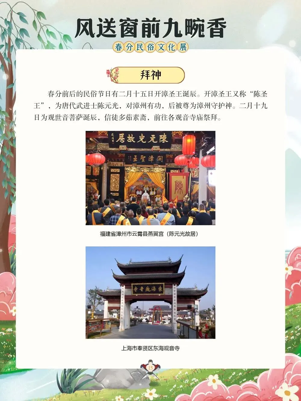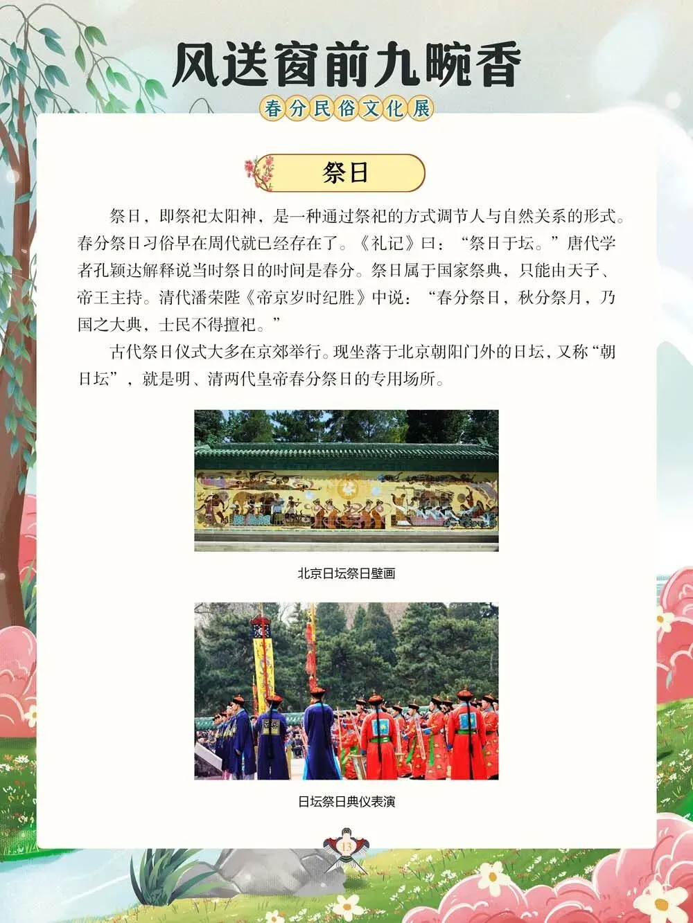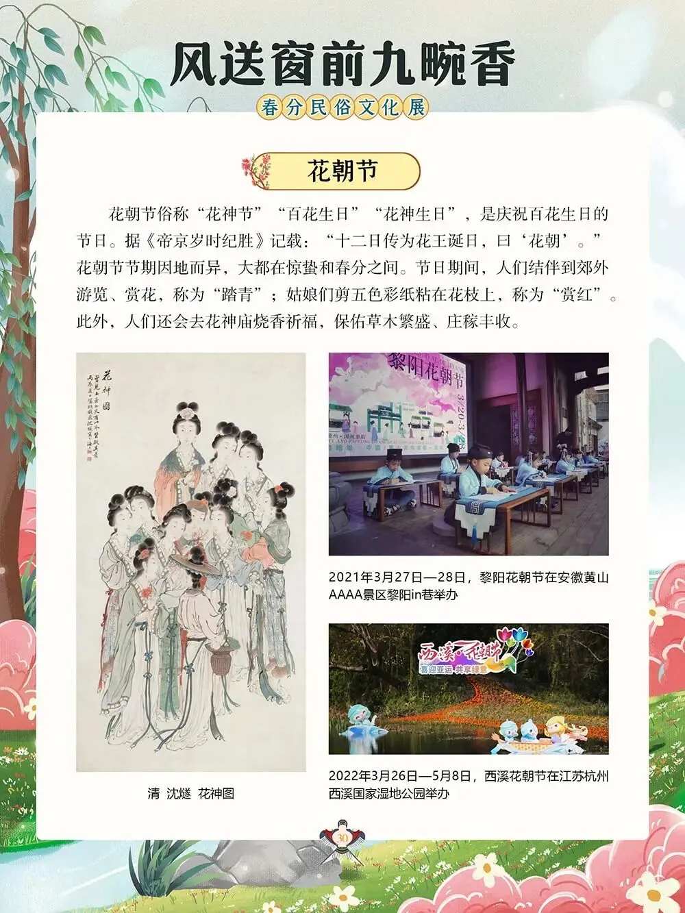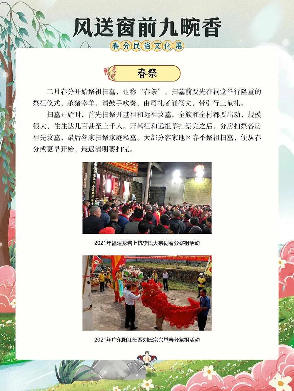 本展览聚焦春分的节气内涵与民俗文化,介绍其相关的传统习俗、文化意象,助力大家了解并传承这一承载着农耕智慧与生活意趣的节气文化,感受传统文化里的自然韵律与人文温度。