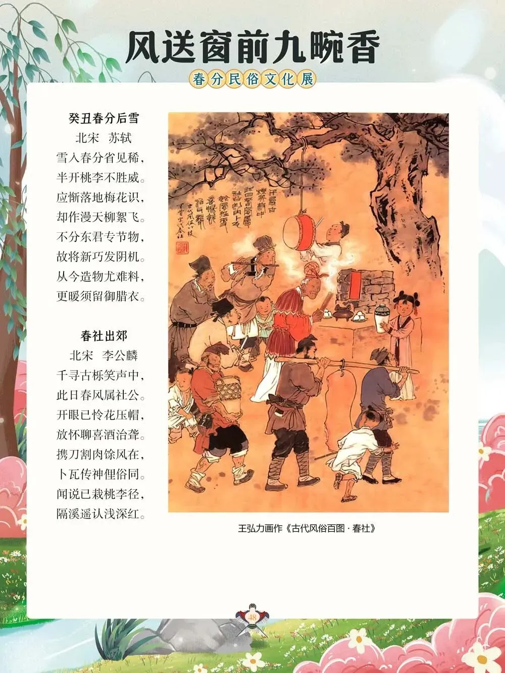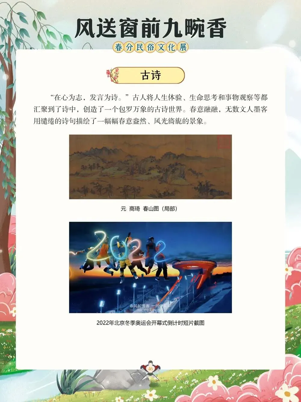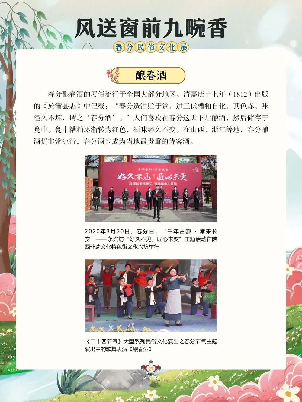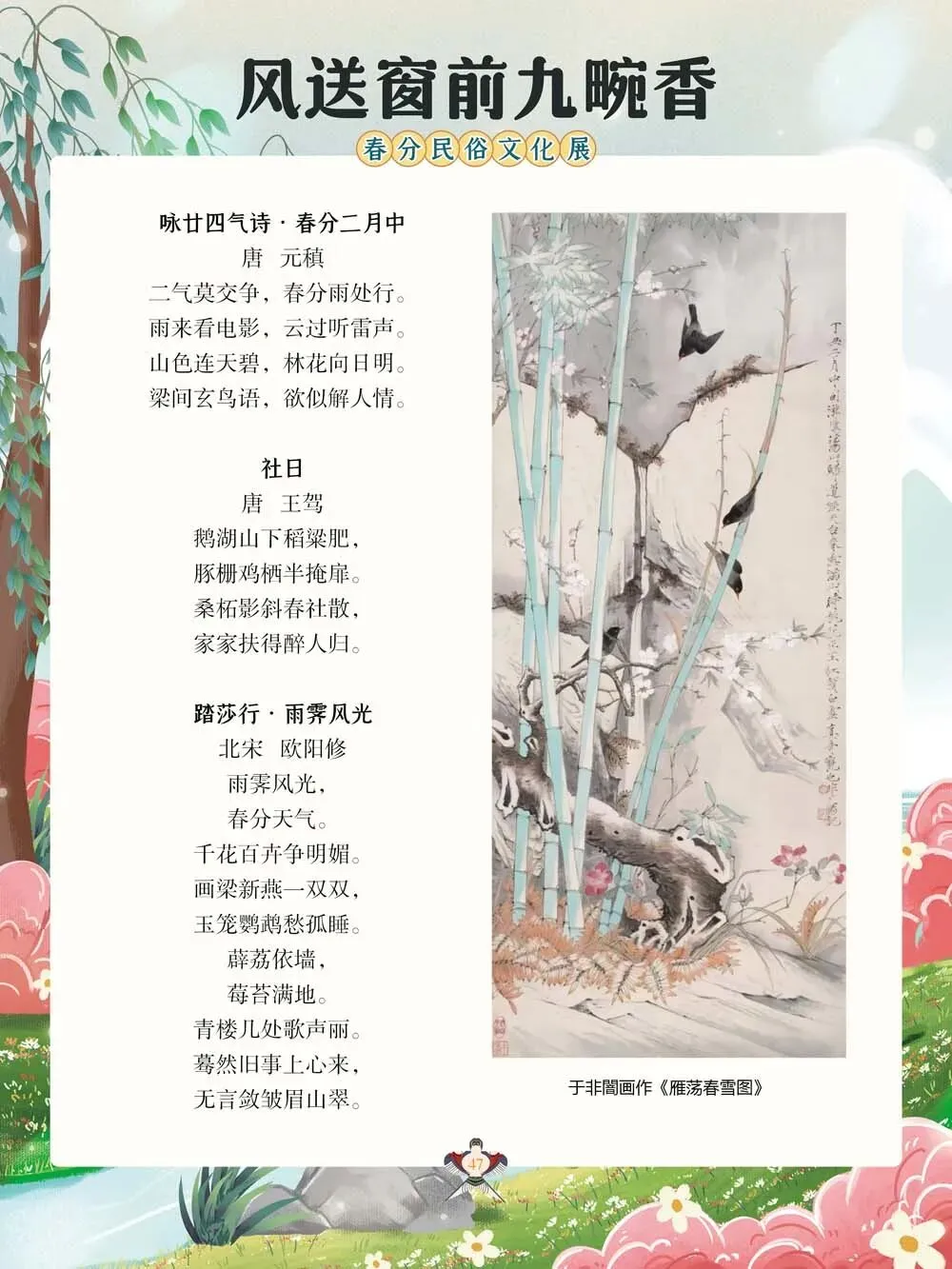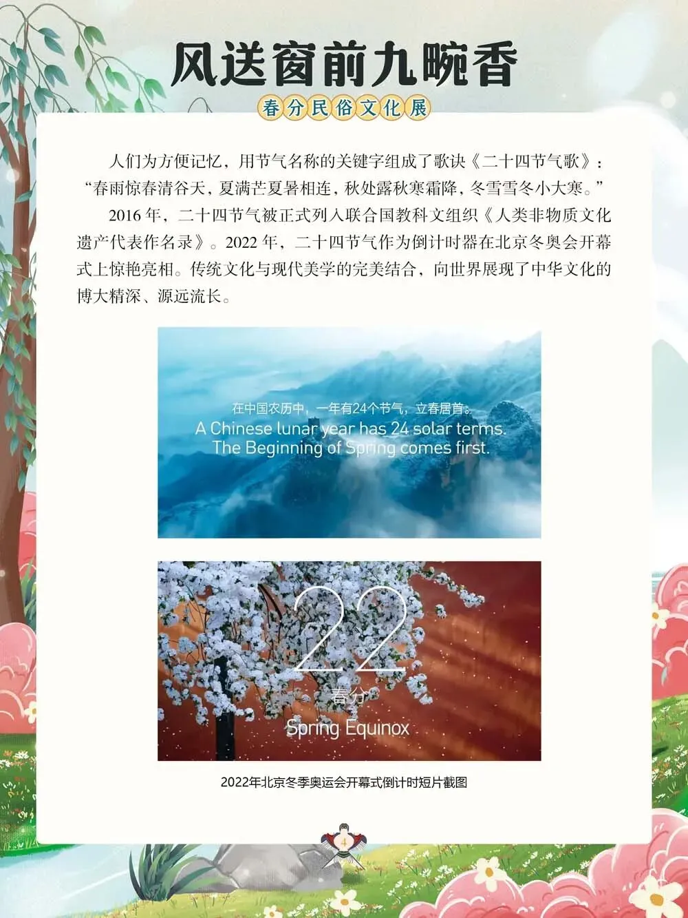 本展览聚焦春分的节气内涵与民俗文化,介绍其相关的传统习俗、文化意象,助力大家了解并传承这一承载着农耕智慧与生活意趣的节气文化,感受传统文化里的自然韵律与人文温度。