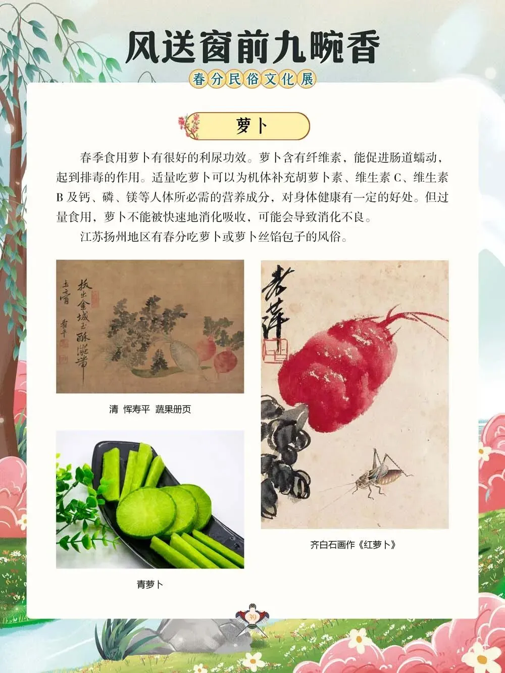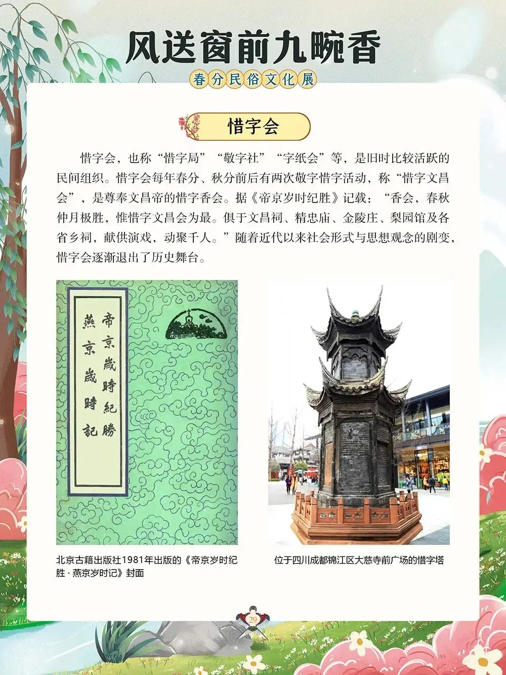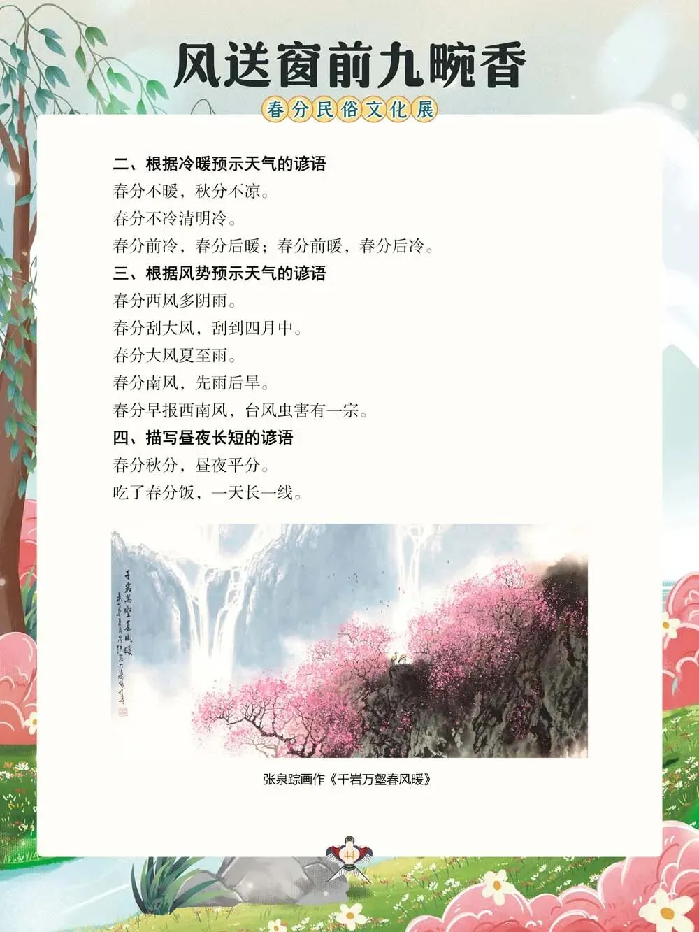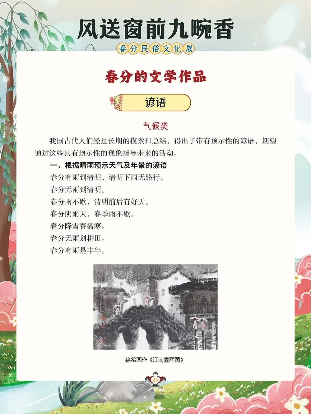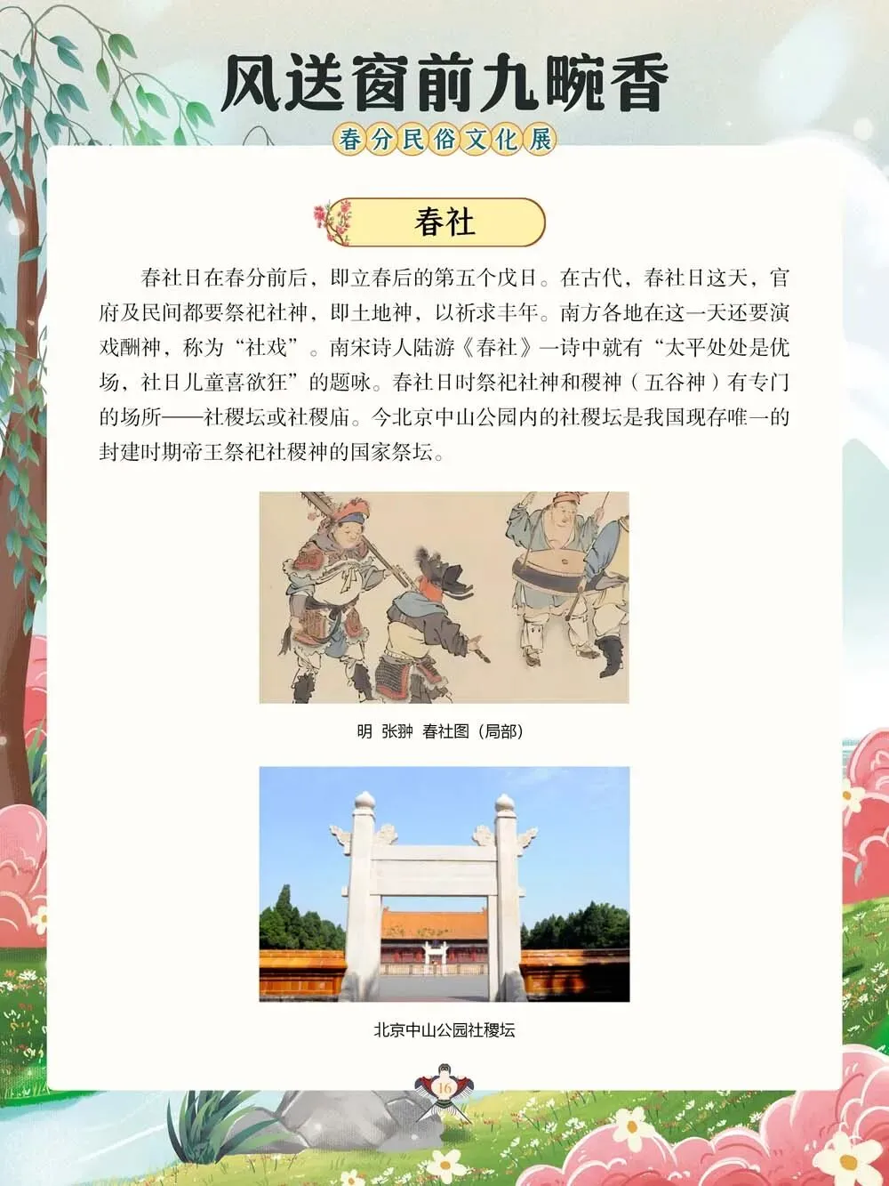 本展览聚焦春分的节气内涵与民俗文化,介绍其相关的传统习俗、文化意象,助力大家了解并传承这一承载着农耕智慧与生活意趣的节气文化,感受传统文化里的自然韵律与人文温度。