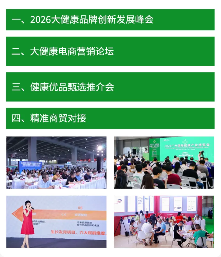 同期举办大健康品牌创新发展峰会、大健康电商营销论坛、健康优品甄选推介会及精准商贸对接等多场高规格活动,为行业人士提供深度交流与高效合作平台。