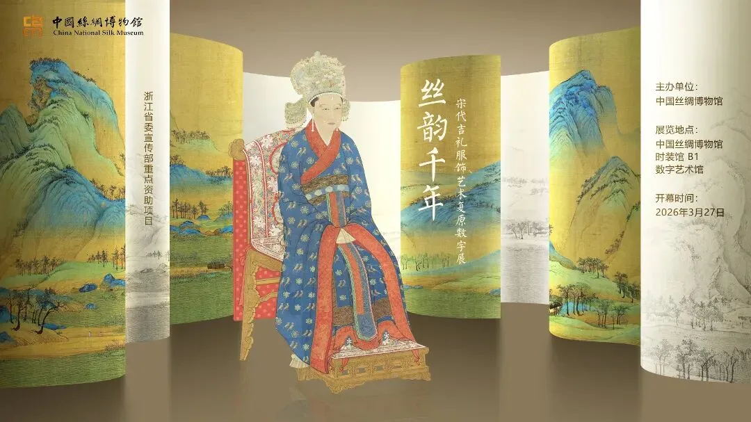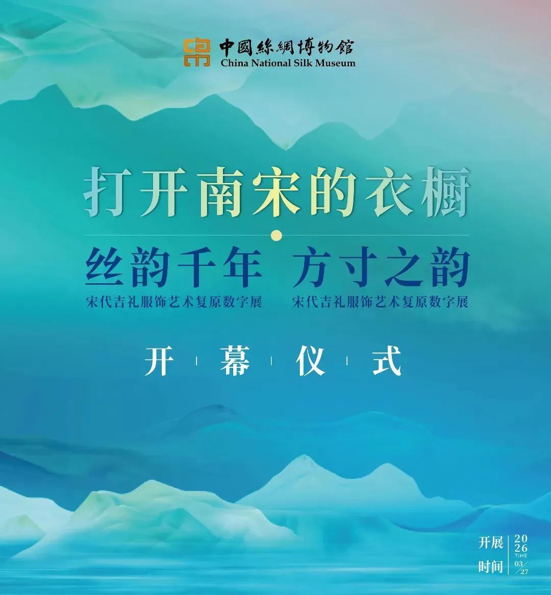 3月27日下午,中国丝绸博物馆三大展览同步启幕,分别为“打开南宋的衣橱”“丝韵千年——宋代吉礼服饰艺术复原数字展”“方寸之韵:中国古代女性内衣文化展”。同日,“南宋风华之夜”主题文化活动精彩上演,以展览为根基、以雅集为载体,多维度展现宋韵文化的璀璨与丝路文明的交融。