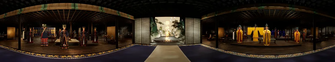 “丝韵千年——宋代吉礼服饰艺术复原数字展”创新运用三维建模、数字布料解算与沉浸折幕空间,将宋代祭天礼、亲蚕礼等吉礼服饰“活化”呈现,让静态文物转化为生动的礼仪场景,带领观众沉浸式感受宋礼规制与服饰美学。