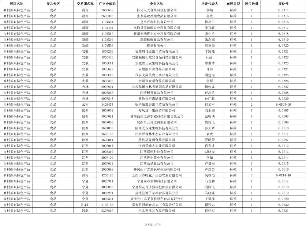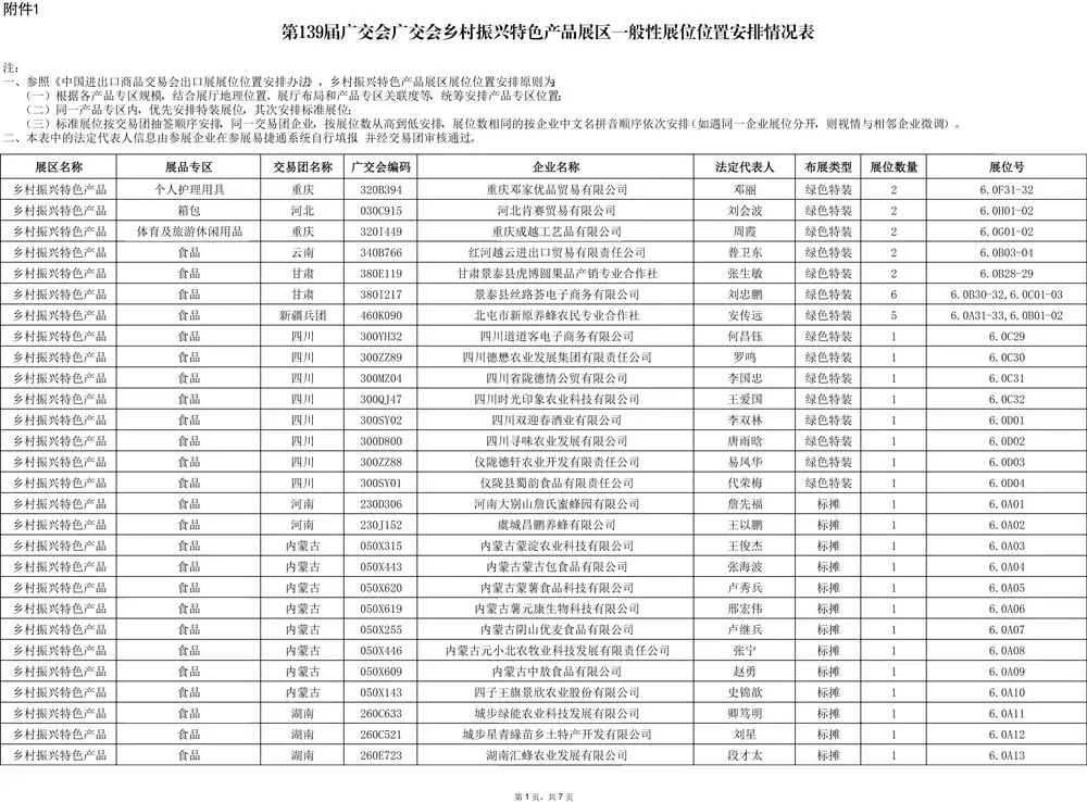 届广交会出口展乡村振兴特色产品展区一般性展位(含特装及标摊)位置安排方案已经