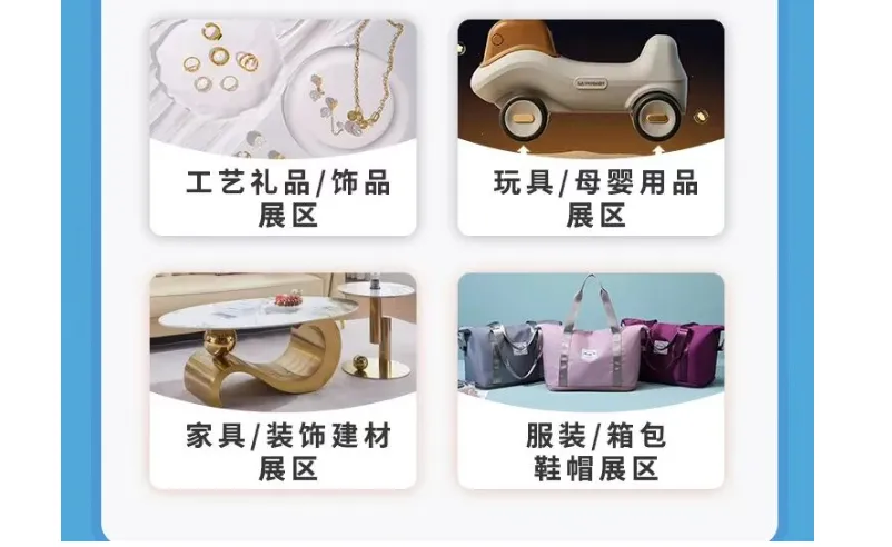 工艺礼品/饰品展区:手工制品(布艺、雕刻等)、广告礼品、包装礼品、玩具礼品、纪念品及时尚饰品。