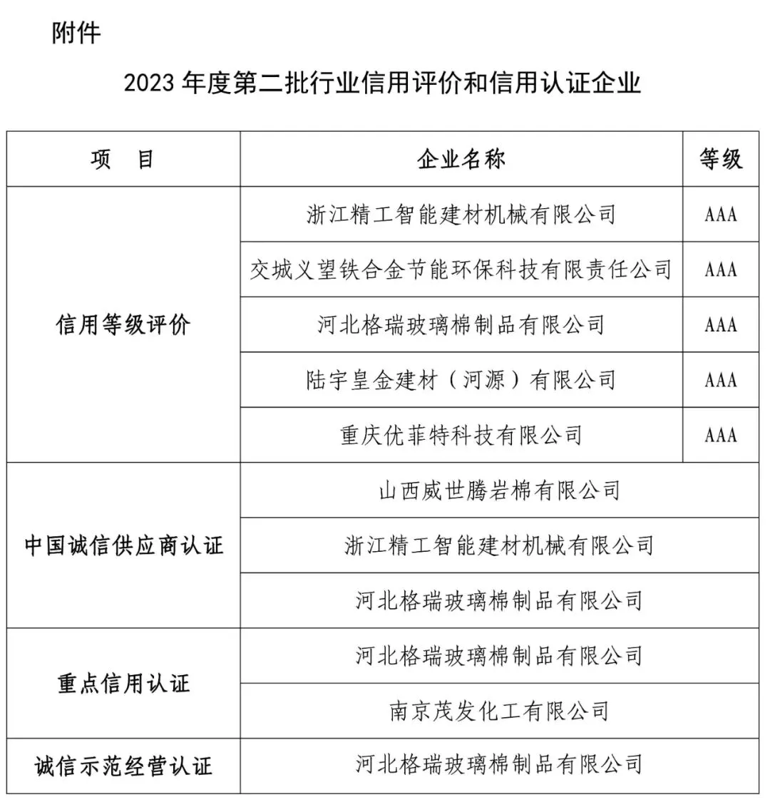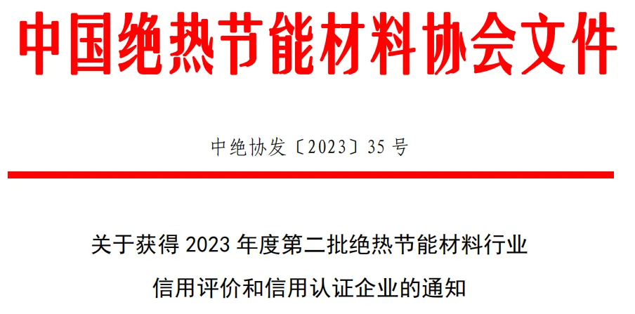 根据《关于开展2023年度绝热节能材料行业信用评价、信用认证工作的通知》,协会组织开展了行业企业信用等级评价和认证工作。