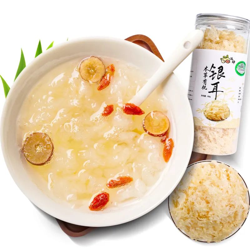 派绅有机本草银耳80g:免煮焖泡即食 低脂低碳水(本草银耳 有机认证)1次只要一块多!全部都是精华!比起普通整朵银耳,我们人工剪去蒂头,只保留胶质丰富的优质耳瓣!营养更全面!吸收率更高!30多倍泡发率,2克即可焖一杯,一瓶可食用40次!太适合上班党宝妈族了!最重要的是真的很方便!!!