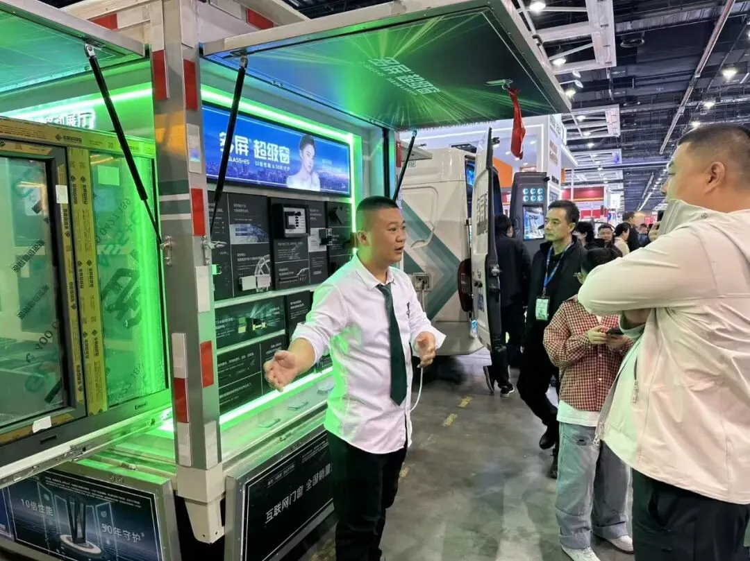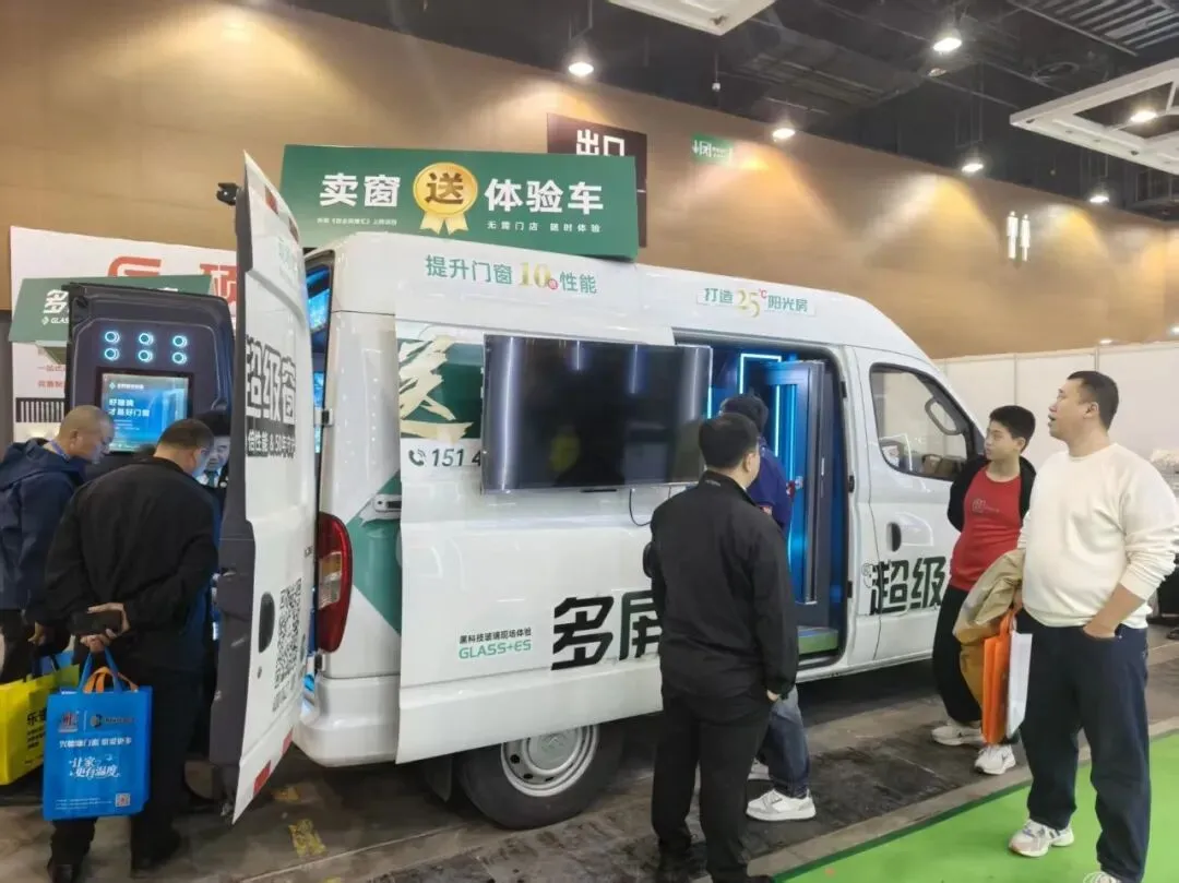 多屏科技此次参展,把最核心的产品性能,装进了一辆辆可以开到消费者家门口的体验车里——隔热多少、隔音多少,不用听介绍,自己动手试。想要换窗户,小区里就能下单,不用到建材市场跑来跑去。