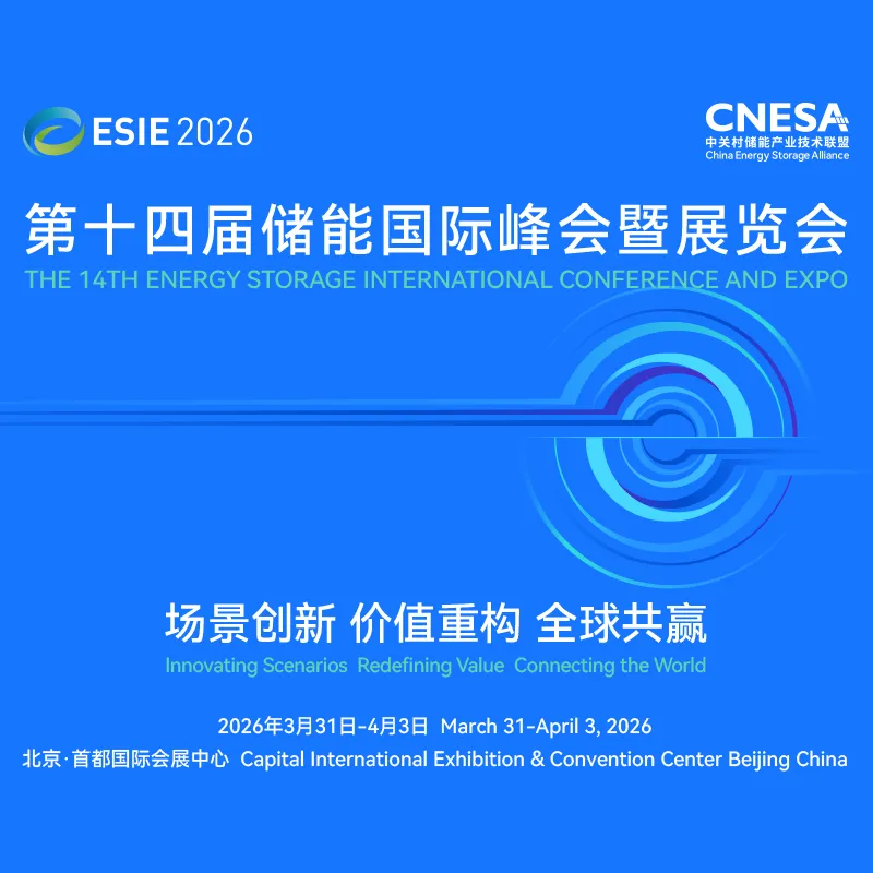 第十四届储能国际峰会暨展览会ESIE 2026将于2026年3月31日至4月3日在北京·首都国际会展中心举行。