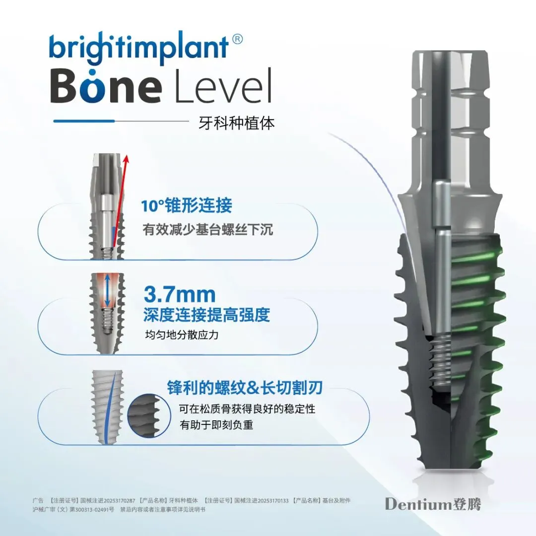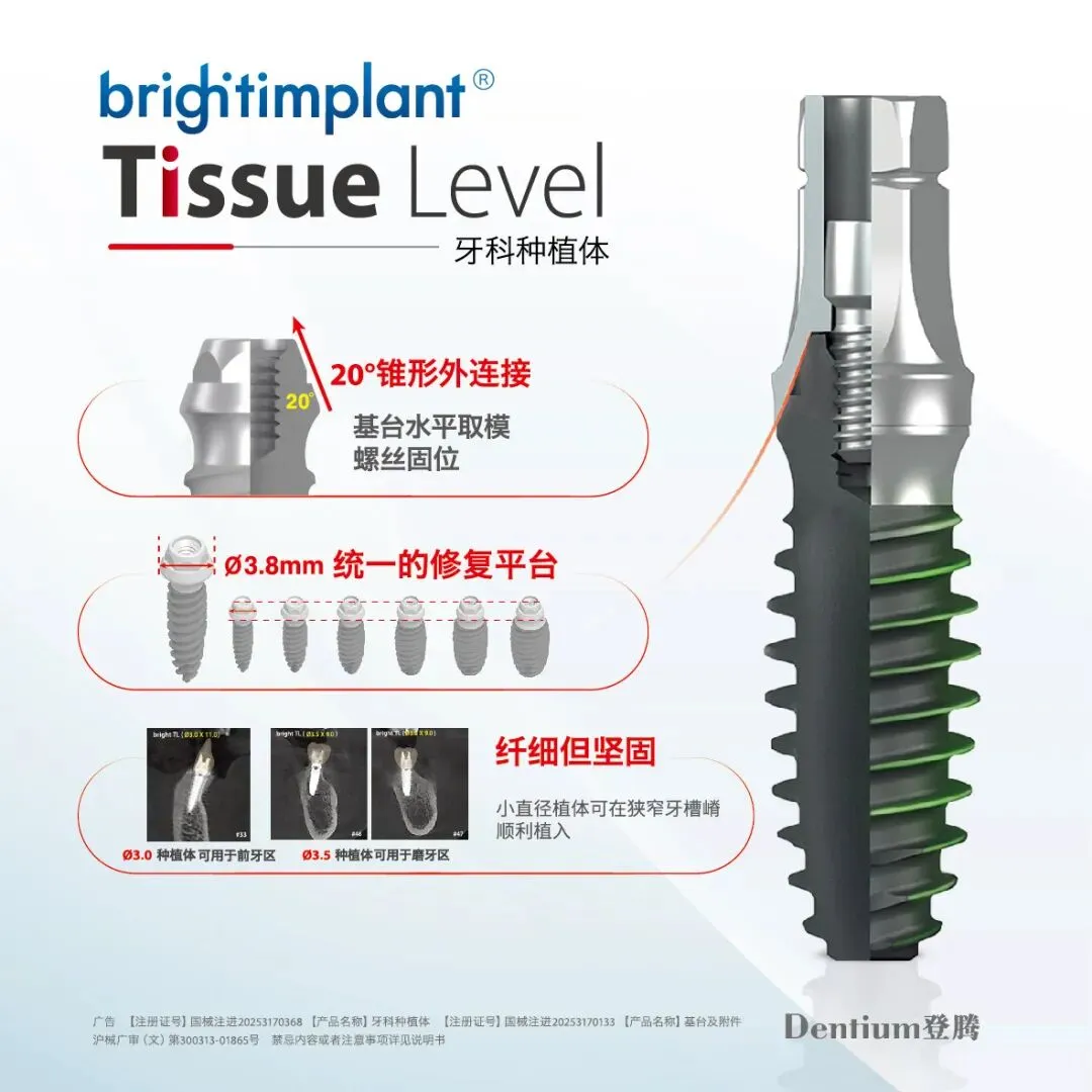 本次展示包括:bright CT、TARS 增强现实口腔种植导航、bright种植体系统、SuperLine种植体系列、易普莱种植体系统、DASK-Simple工具盒、无线种植机、骨组织再生产品等。通过 “登腾数字化一站式解决方案” ,为种植领域提供从诊断到修复的一站式修复方案。