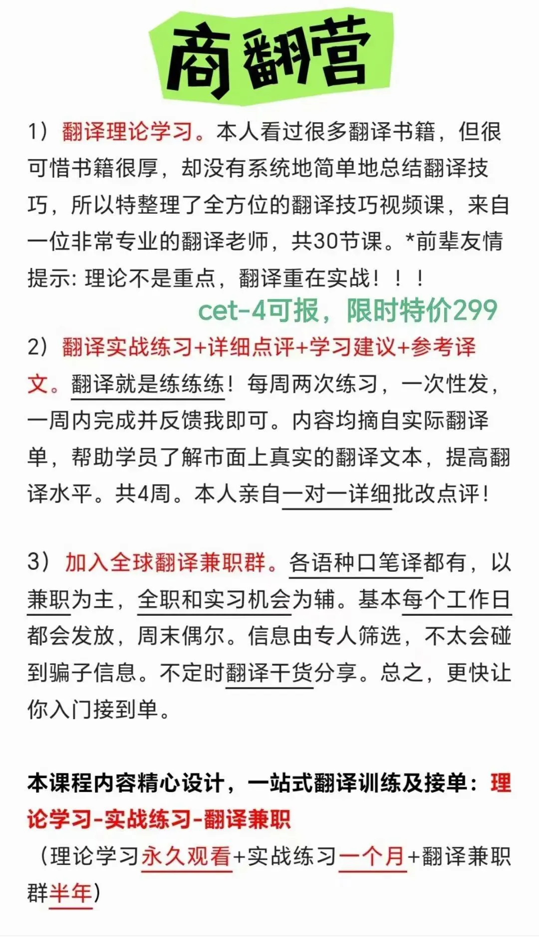 目前?特特价299?永久宝藏翻译技巧课+一个月实战+半年翻译兼职群