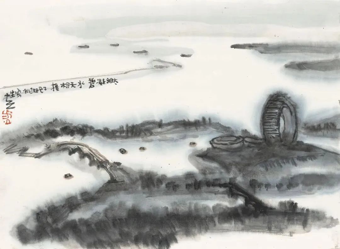 ▲《太湖凝碧 水天相接》 33cm×45cm