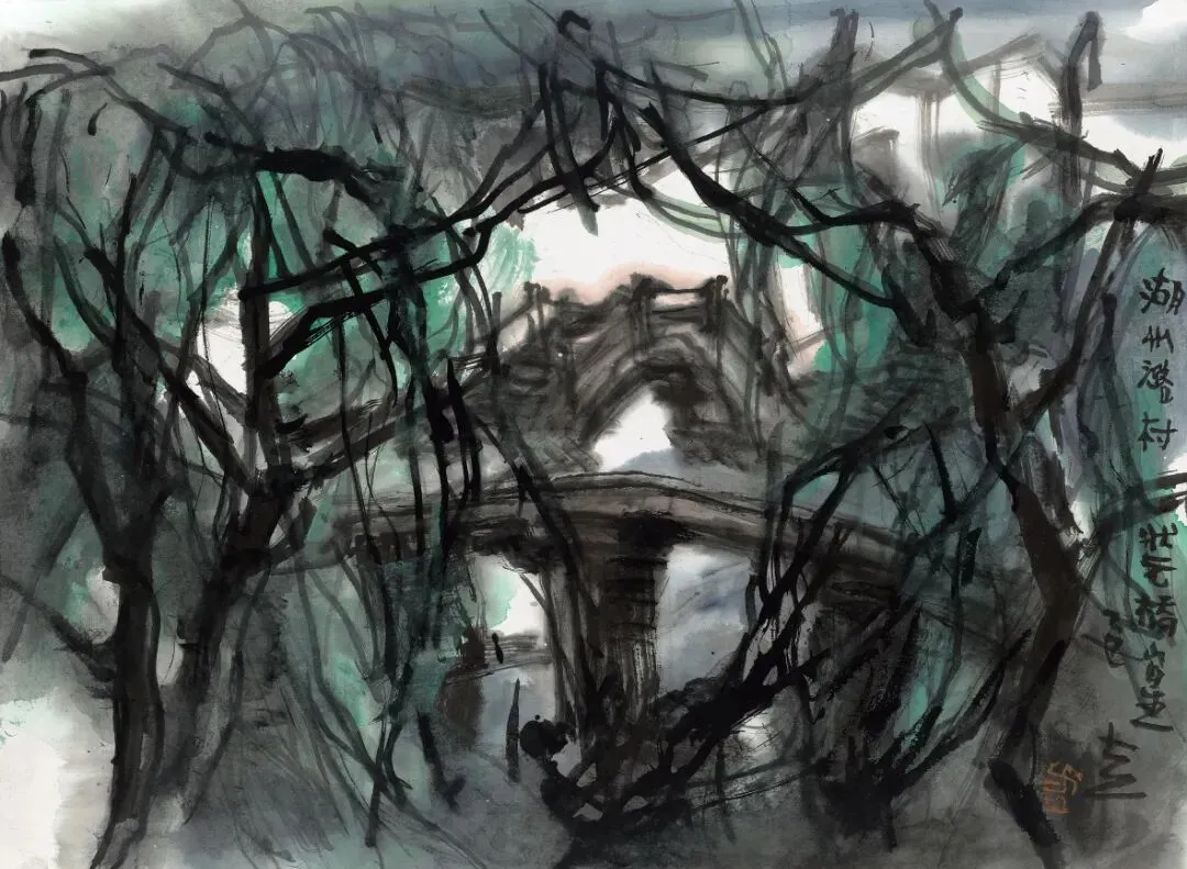 ▲《湖州潞村状元桥》 33cm×45cm