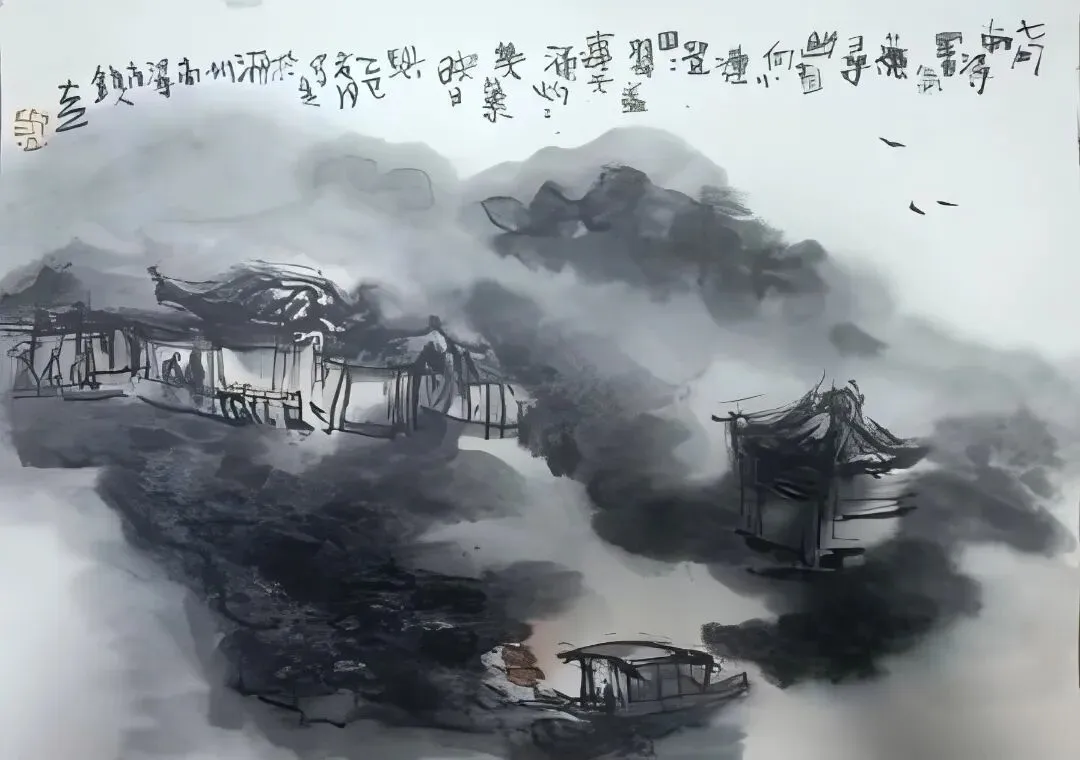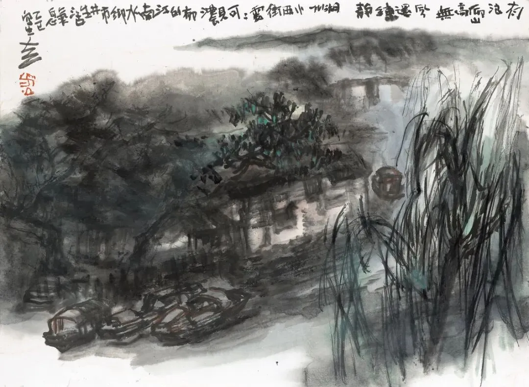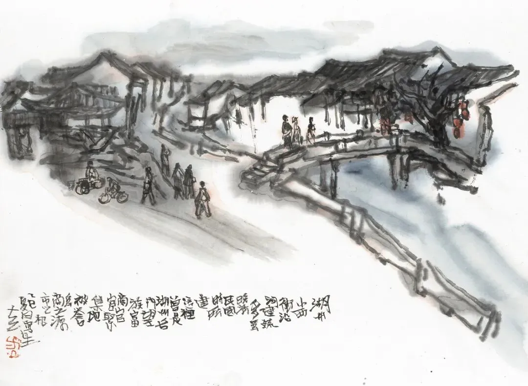 ▲《浙江湖州潞村古镇写生》 33cm×45cm