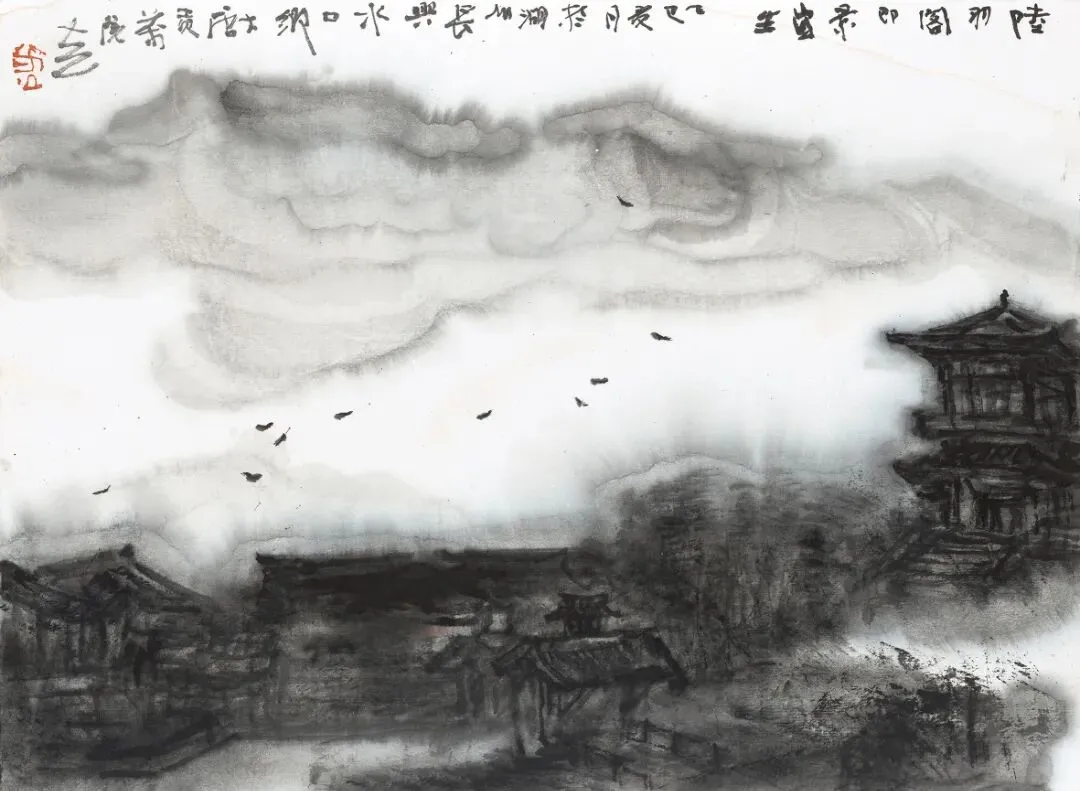 ▲《陆羽阁即景写生》 33cm×45cm