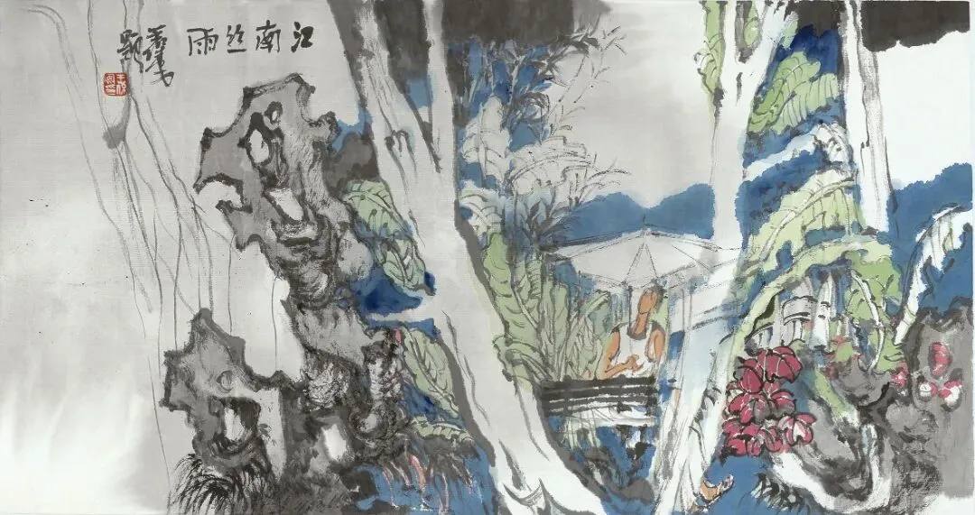 ▲《江南丝雨》 33cm×59cm