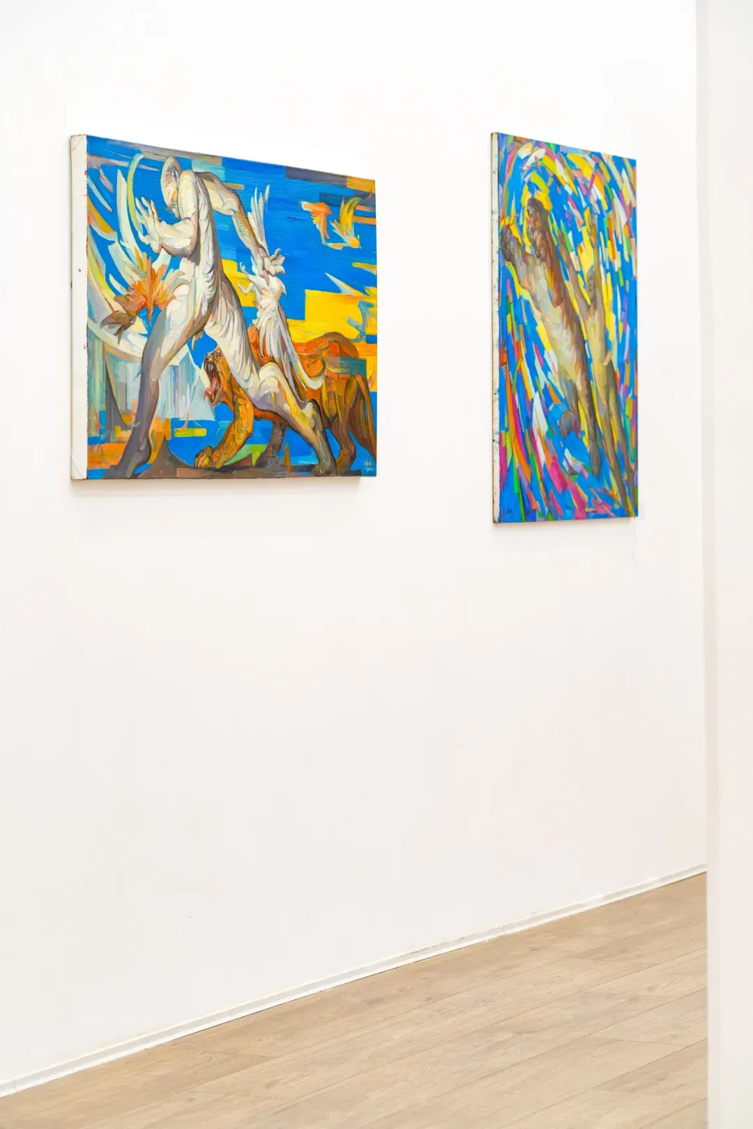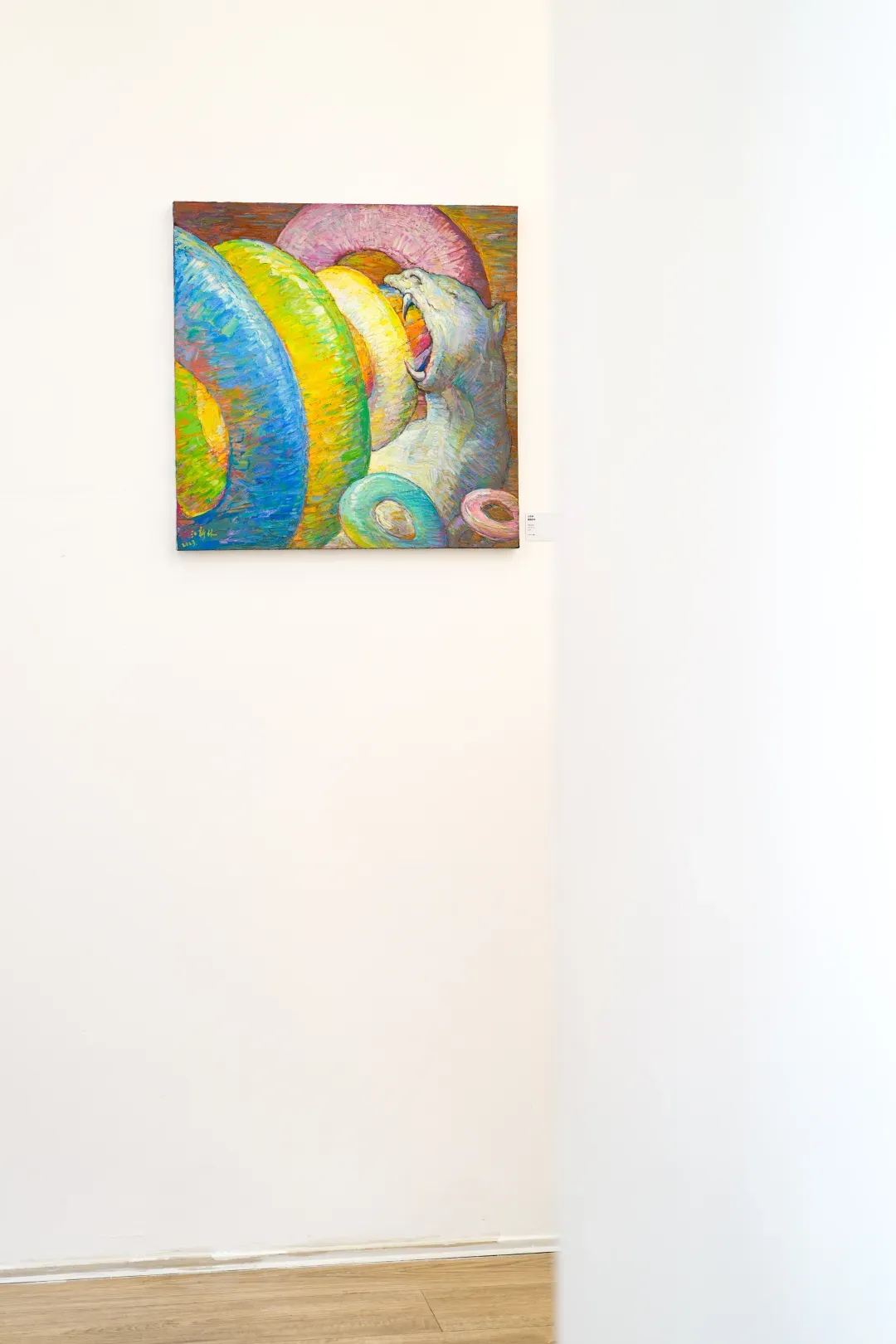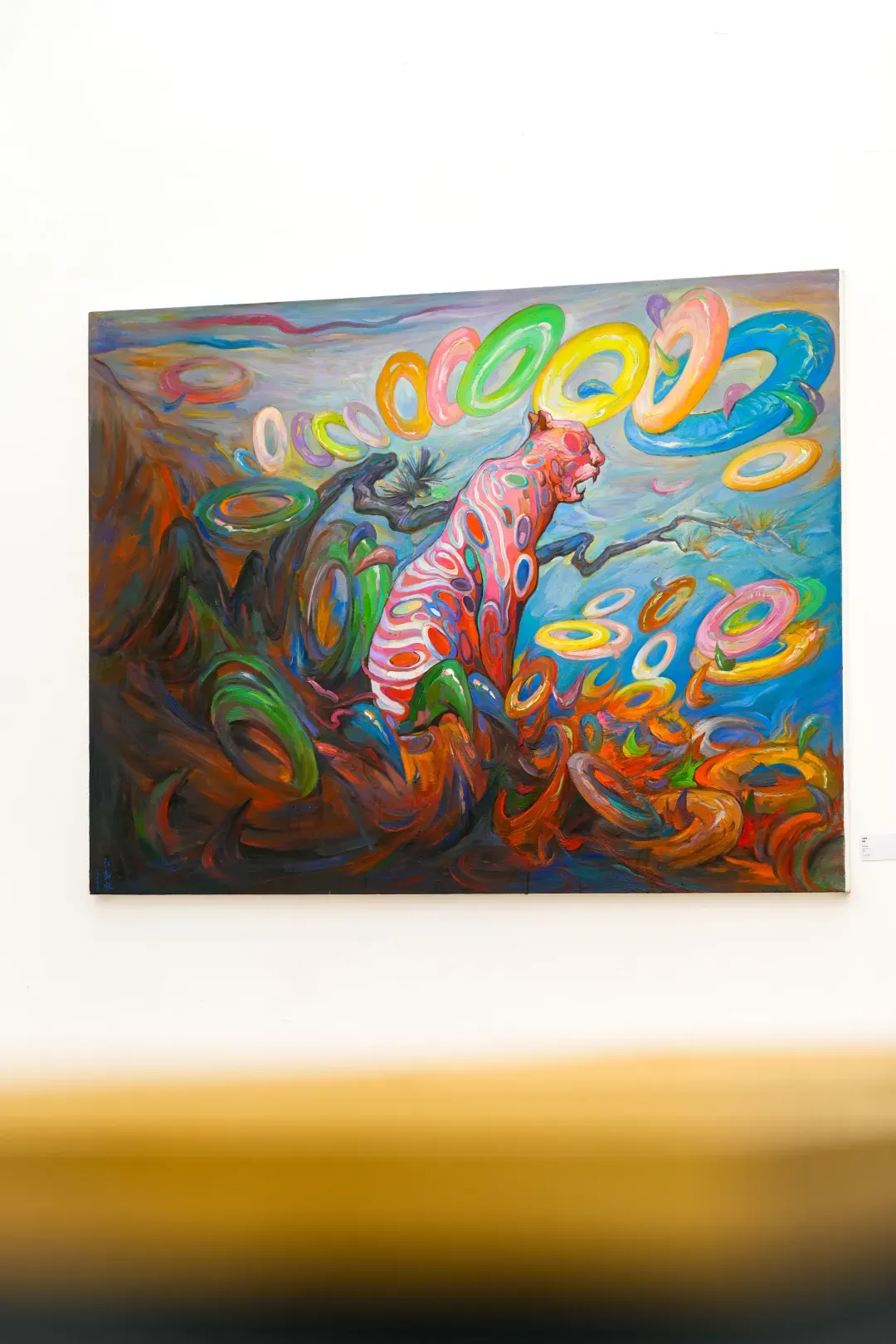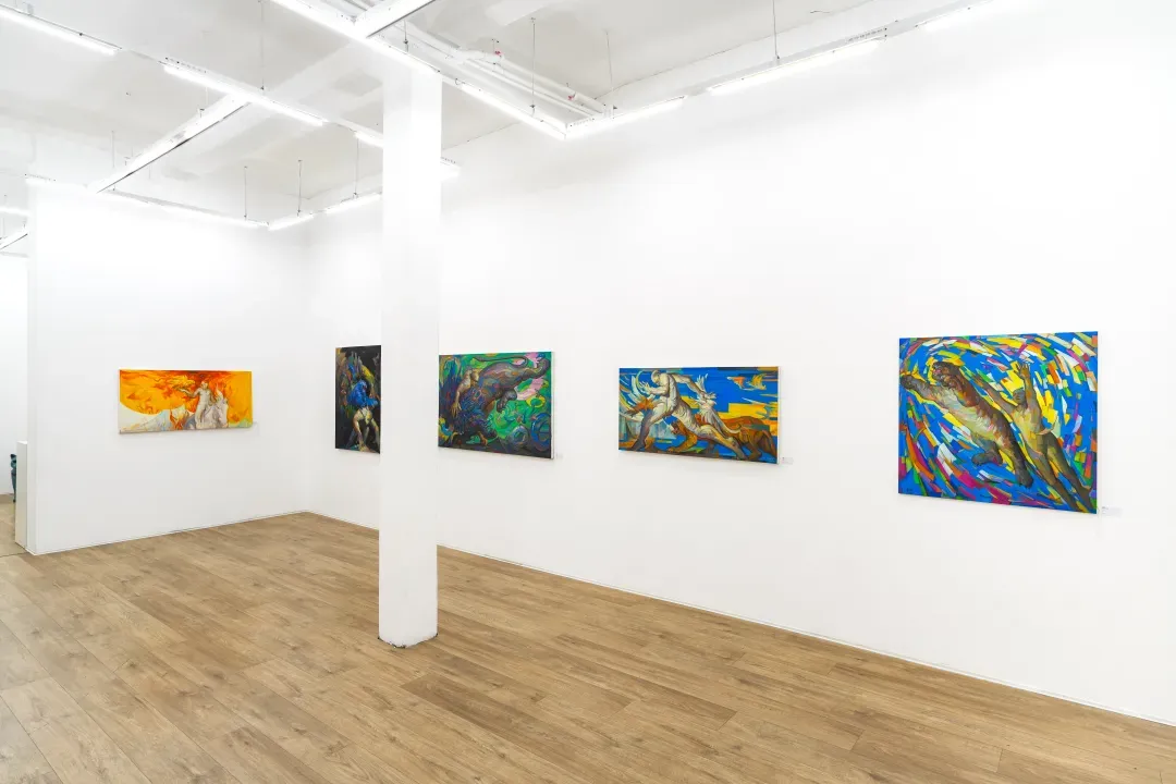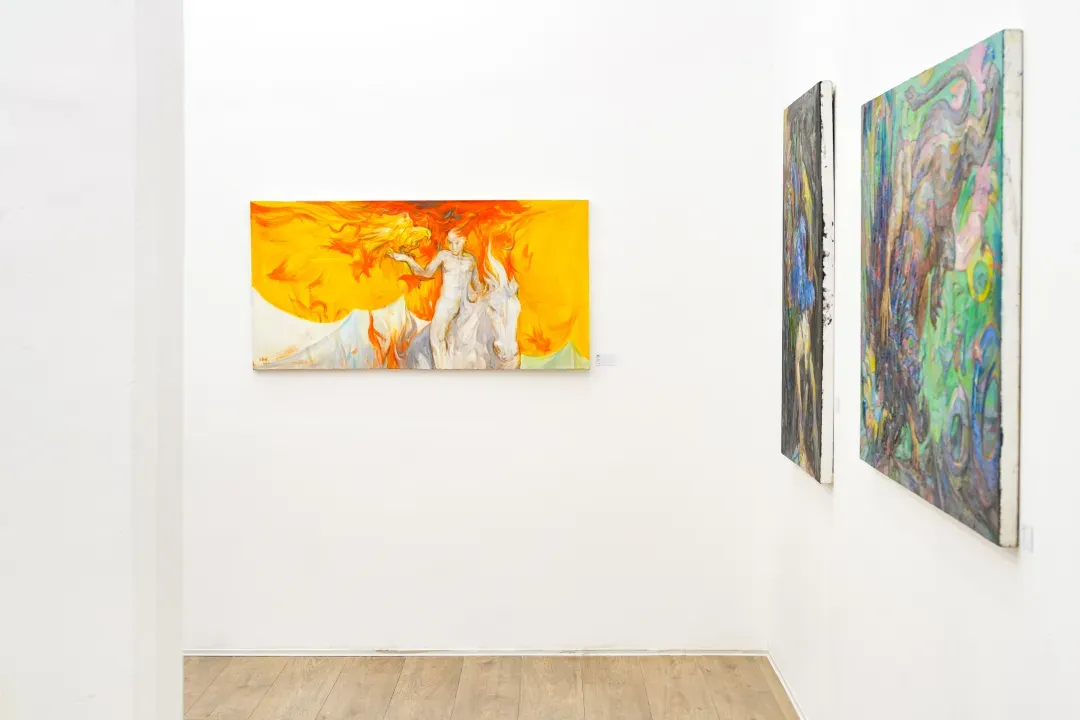 在這些畫面裡,動物不只是象徵自然或野性,而是人性中被壓抑、被忽略的部分;人物也不再是理性的主體,而是一種持續變動的存在狀態。江新林透過誇張的色彩與變形的形體,探討人與自然之間深層而複雜的情感連結,挑戰我們對身份、角色與界線的既定想像。