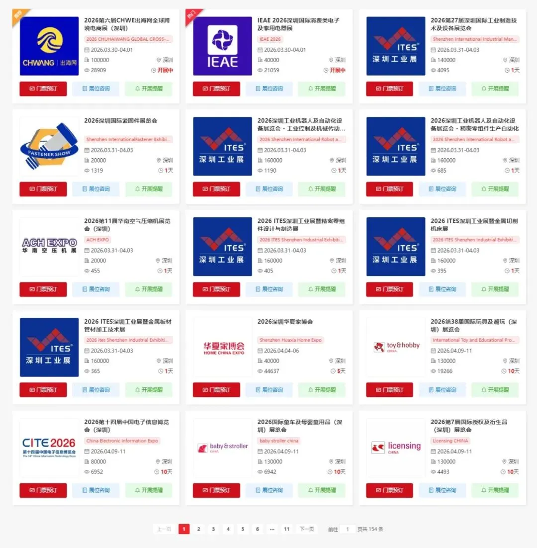 2026年4月深圳将举办多场重要的展会活动,涵盖了跨境电商、消费电子、工业、紧固件、压缩机、家具、饮料、电子、玩具、大数据、玩具、品牌授权、显示、电源、电脑、电力、视听、教育、服装、印刷、纸业、复合材料、印刷、包装、标签印刷、家居、保健、物流、包装、消费电子、礼品、跨境电商、品牌授权、食品、船舶、新材料、电池、人工智能、跨境电商、船舶、低空经济、无人机、粉末冶金、电机、汽车;展等多个领域。小编为大家整理了深圳展会4月展会排期表,希望能帮助你规划行程。末文获取深圳展会门票及展位咨询预约入口