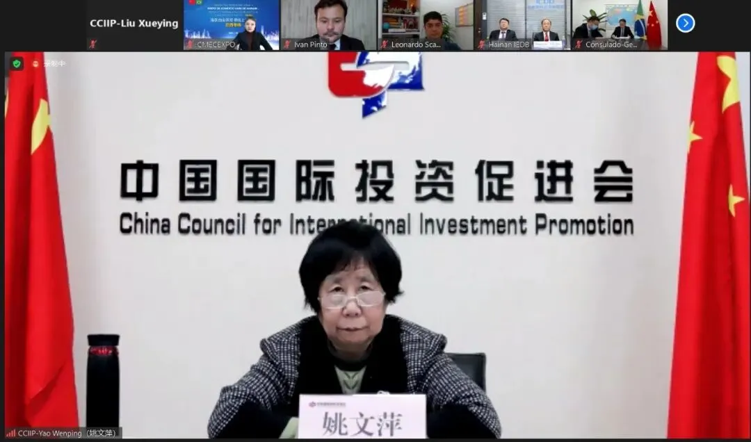 本次会议以探寻两国经贸合作新模式为目标,共同探讨巴西企业在海南自由贸易港布局发展的新思路、新方向。中国驻里约热内卢总领馆总领事李杨、中国国际投资促进会姚文萍、中巴企业家委员会巴方委员会主席内维斯大使、米纳斯州投资贸易促进局Mr.Ivan Pinto、巴西商业领袖组织Mr. José Ricardo、西麦克国际展览有限公司总经理杨明出席线上推介会并致辞发言,海南国际经济发展局副局长宫起君致辞并介绍海南自由贸易港总体方案政策及机遇。