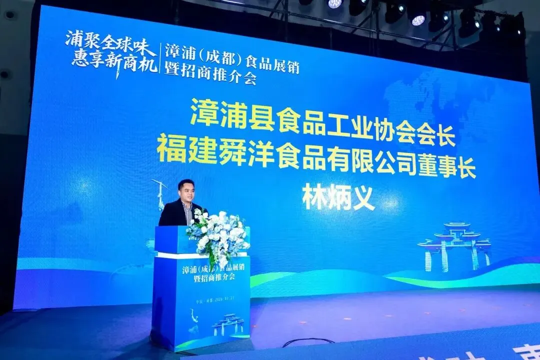 漳浦县食品工业协会会长、福建舜洋食品有限公司董事长林炳义,作为本土企业代表在活动上发言推介。