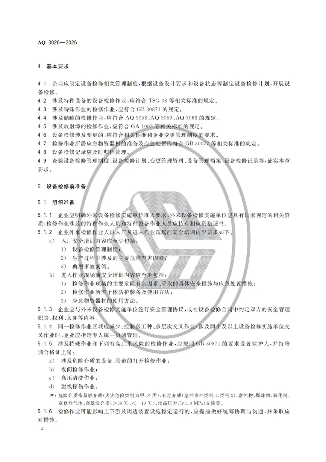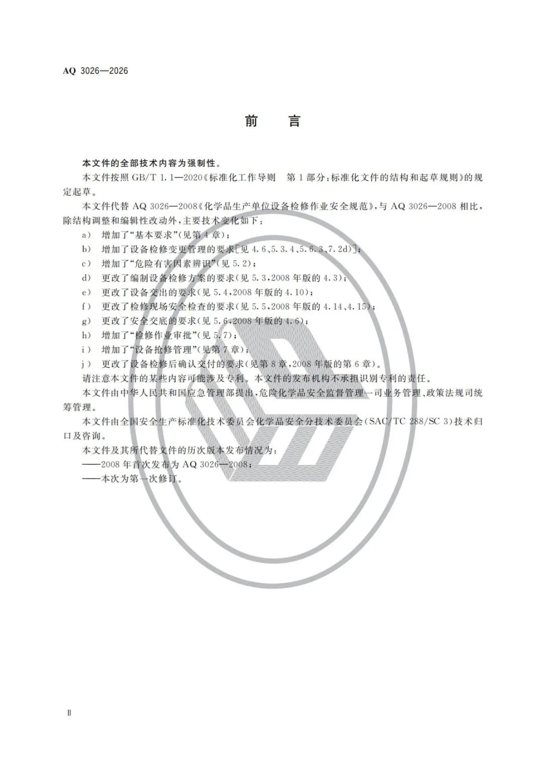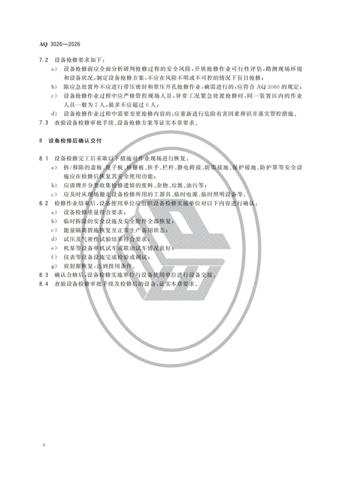 中华人民共和国应急管理部批准《化工企业设备检修作业安全规范》等3项行业标准(标准文本附后),现予公布。