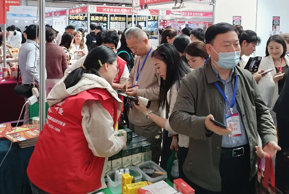 展位前一开市就已聚集了不少客户,他们被陈半坡老黑膏药,迷迭香眼贴,陈半坡小儿纯手工蜂蜜贴和香药植物热灸康的独特的魅力所吸引,陈半坡老黑膏药以配方独特、选料上乘、工艺精湛、品质卓越而闻名,备受百姓赞誉。