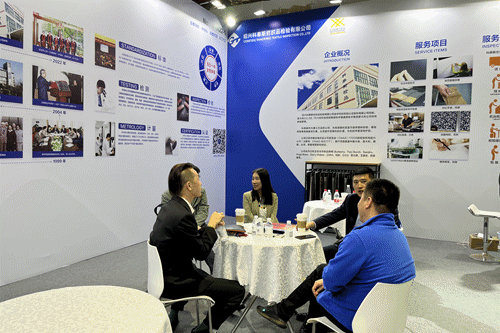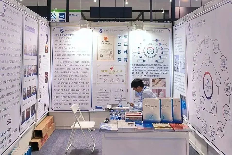 展会首日,中纺标浙江公司及科泰斯展台访客络绎不绝,交流氛围浓厚。工作人员以专业知识热情接待每一位洽谈方,详尽介绍公司集标准、检验、检测、计量、认证“五位一体”的业务优势及全国网络化布局特点,同时邀请意向客户参观实验室,为后续合作打下坚实基础。